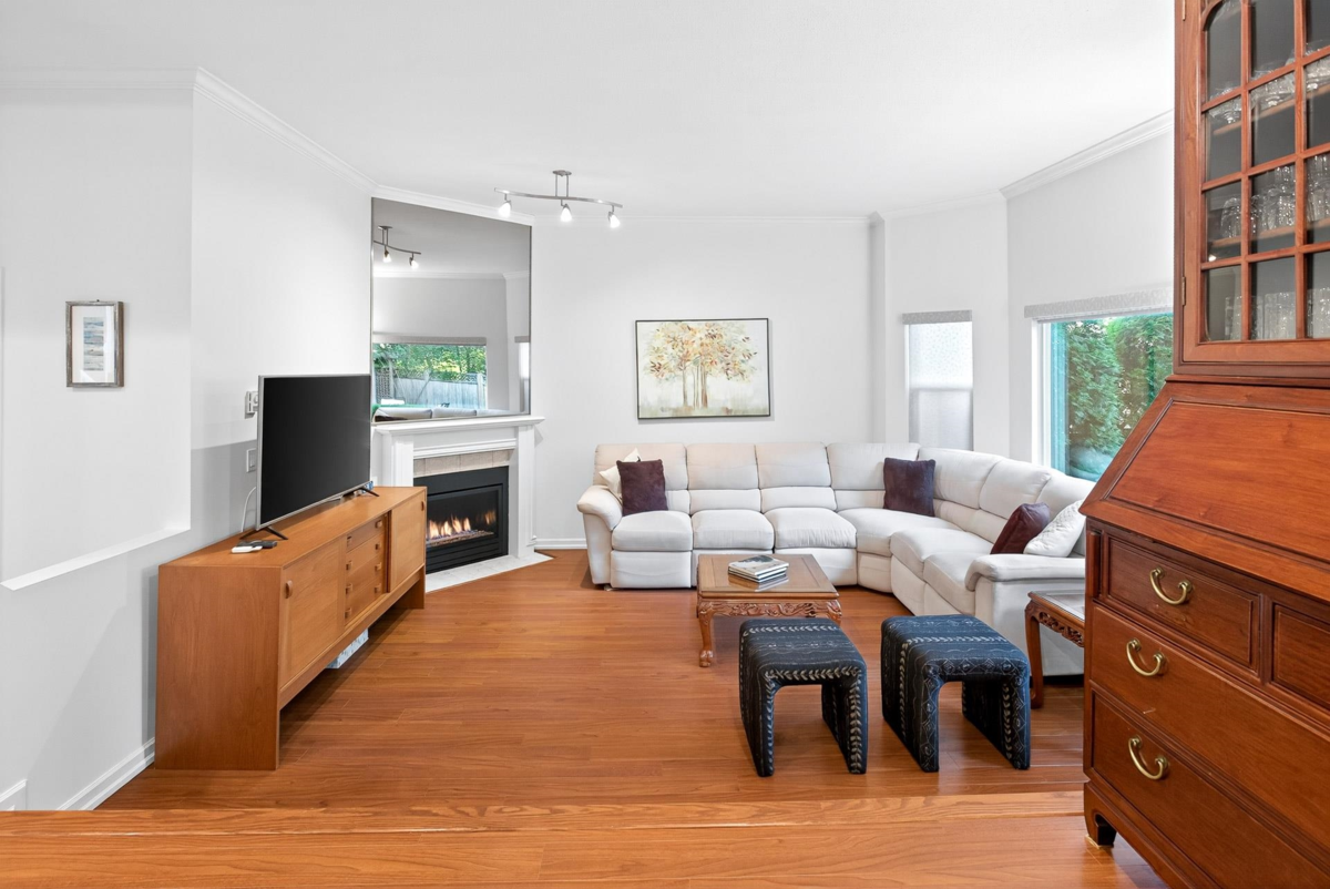 SOMETHING TRULY SPECIAL, SO BE THE FIRST TO EXPERIENCE THIS PRIVATE END UNIT WITH A FULLY FENCED BACKYARD THAT WILL MAKE YOU SAY WOW!! , 2 level, 2000sqft, 3 bdrm + den townhome boasts an elegant separate dinrm, with sliders that open to a private SUNDRENCHED patio. The large sunken living room (12 ft CEILINGS) features a cozy gas f/p, opening up to the modern kitchen featuring granite & S/S appls, fridge with ice & water. The Butlers bar & extra cabinets provides loads of storage & counter space in the eating area. Plus, sliders to your HUGE (30'X 50' APPROX) FULLY FENCED BACKYARD WITH LARGE CONCRETE PATIO . Upstairs has 3 large bdrms plus a den/office & 2 ENSUITES. Walking distance to West Coast Express, SkyTrain, Buses, Schools & Coq. Ctr. DO NOT MISS OUT ON THIS ONE!