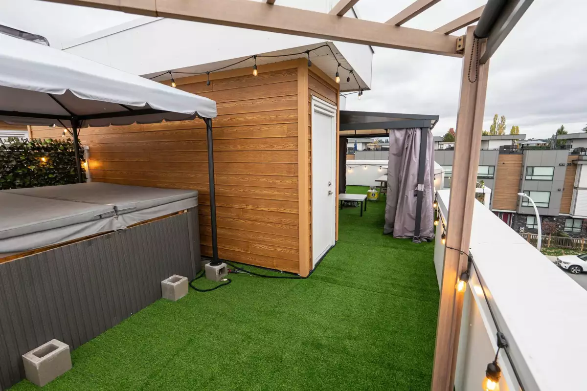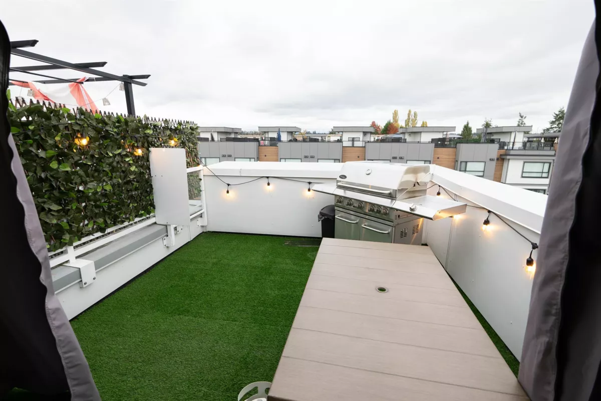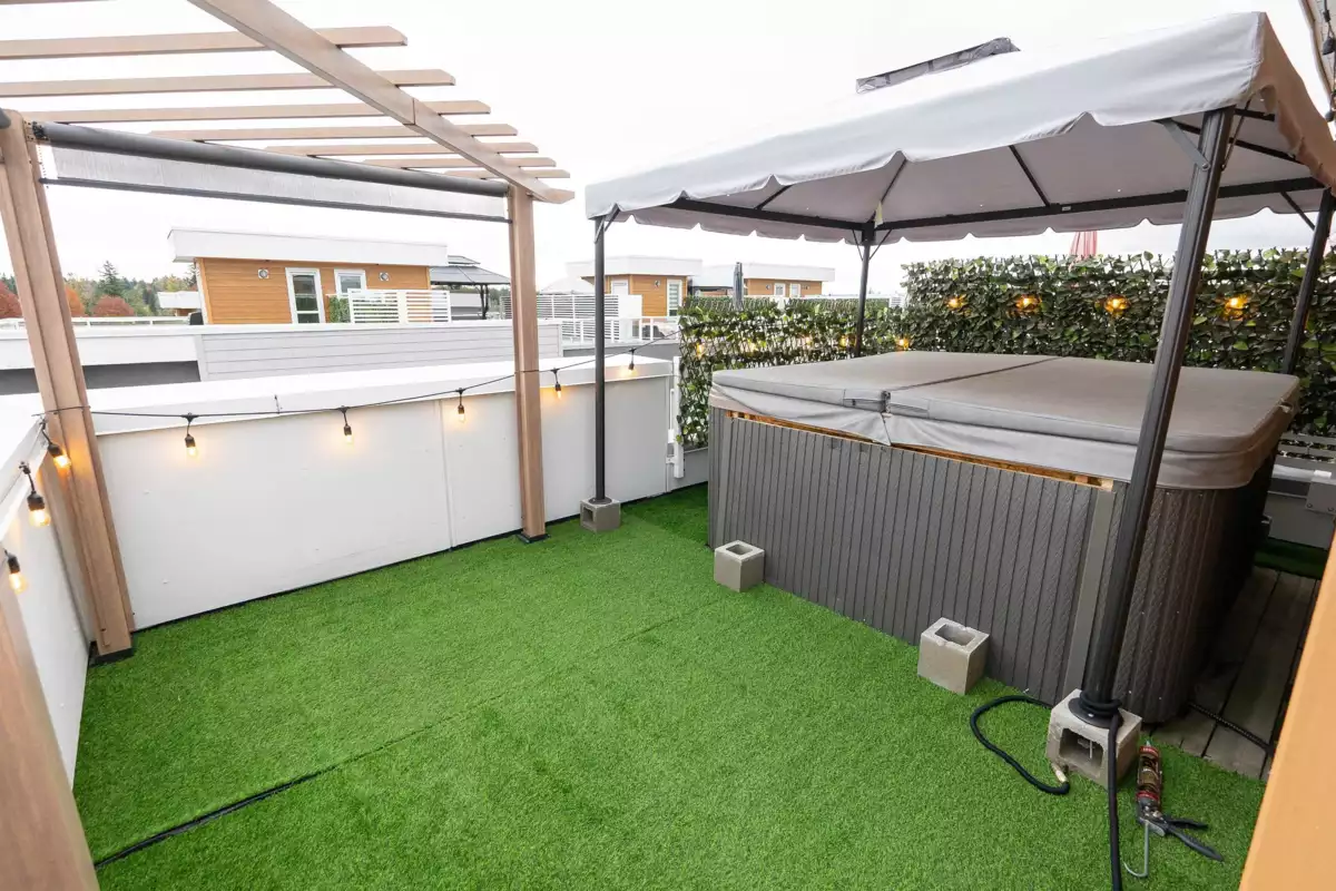 This modern townhome offers a bright, open layout with a sleek kitchen featuring a gas range, waterfall-edge island, and stainless steel appliances. Enjoy spacious living and dining areas, a convenient powder room, and a stunning rooftop terrace ideal for entertaining. Upgrades for Unit #6 include: Bullfrog 7-seater jacuzzi hot tub Omnishield fire, smoke, carbon monoxide & water sensors Horizontal Zebra blinds throughout Additional features include air conditioning, a double garage, and a central location close to all amenities.