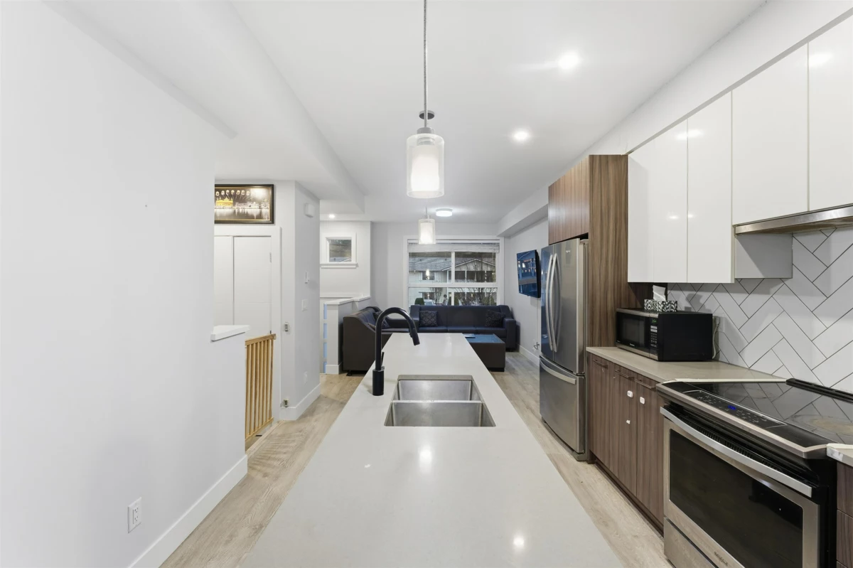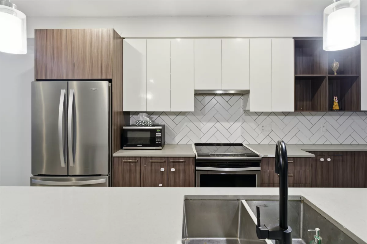 Well-priced rare find near Mill Lake, this well-kept modern rooftop townhouse features 2 bedrooms and 2 bathrooms with a bright open-concept layout, quartz countertops, a large island, stainless steel appliances, and air conditioning. The rare, generously sized private rooftop patio is perfect for entertaining or relaxing with views toward the lake. Includes garage and carport, ample storage, and a highly walkable setting close to Seven Oaks, schools, parks, and transit—an ideal opportunity for first-time buyers, professionals, or downsizers seeking low-maintenance living. Don’t miss this great deal.