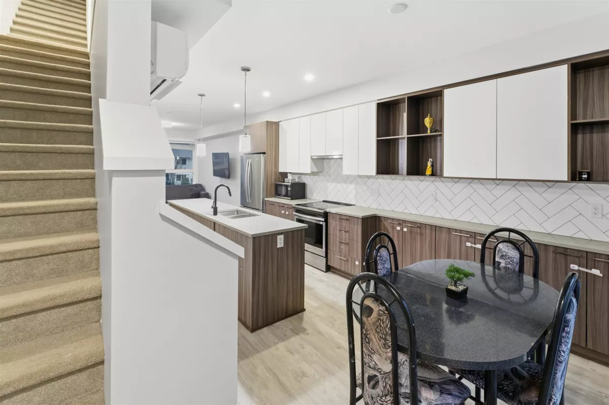 Well-priced rare find near Mill Lake, this well-kept modern rooftop townhouse features 2 bedrooms and 2 bathrooms with a bright open-concept layout, quartz countertops, a large island, stainless steel appliances, and air conditioning. The rare, generously sized private rooftop patio is perfect for entertaining or relaxing with views toward the lake. Includes garage and carport, ample storage, and a highly walkable setting close to Seven Oaks, schools, parks, and transit—an ideal opportunity for first-time buyers, professionals, or downsizers seeking low-maintenance living. Don’t miss this great deal.