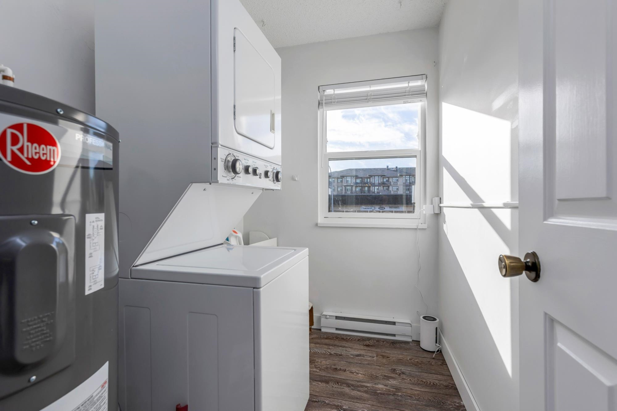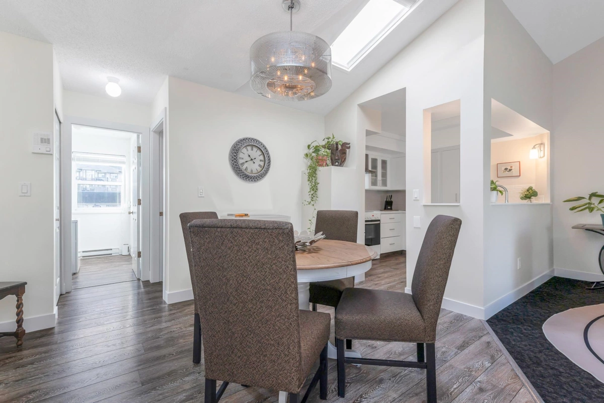 Welcome to this beautifully renovated 2-bedroom townhouse in the heart of the city. Previously 55+ age-restricted, this home is now open to all buyers and is perfect for a small family, first-time buyers, or downsizers. Enjoy a fully updated interior featuring fresh paint, a modern kitchen, new windows, and thoughtful finishes throughout. The home includes a dedicated parking space and storage locker, and backs onto the local library and Salish Park—offering a quiet, green outlook. Ideally located close to schools, amenities, transit, and everyday conveniences.