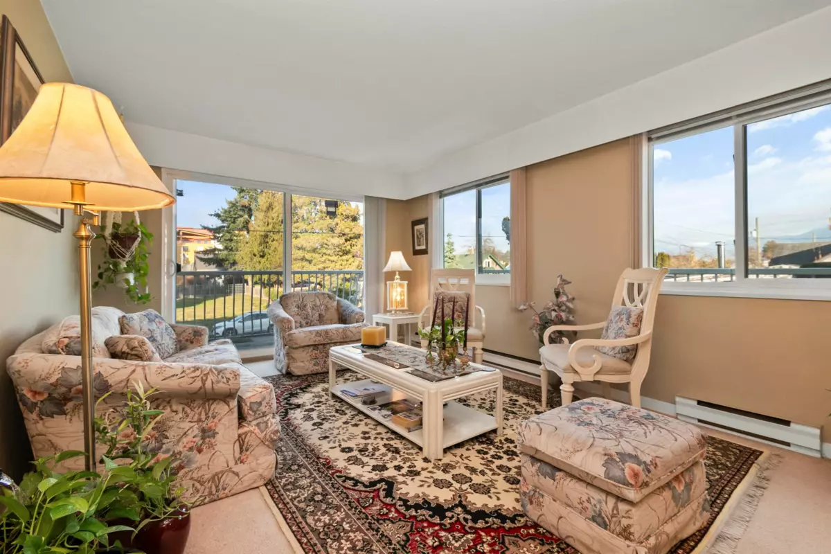 Welcome to Capri Apartments! Nestled in the heart of Chilliwack, this condo offers an exceptional living experience. Located walking distance to District 1881, this 829 sqft home provides seamless access to schools, shopping, and essential amenities. This corner unit offers two spacious bedrooms and a large living room with tons of natural light. Step onto your massive wrap around balcony and enjoy the breathtaking views of Mount Cheam and surrounding mountains. The well-managed strata and welcoming community makes it an attractive option for both homeowners and savvy investors. Building upgrades include a new elevator, new carpets, fresh paint and updated balconies/windows. Unit comes with 1 secure parking stall in garage and 1 storage locker. Pets allowed and rentals allowed!