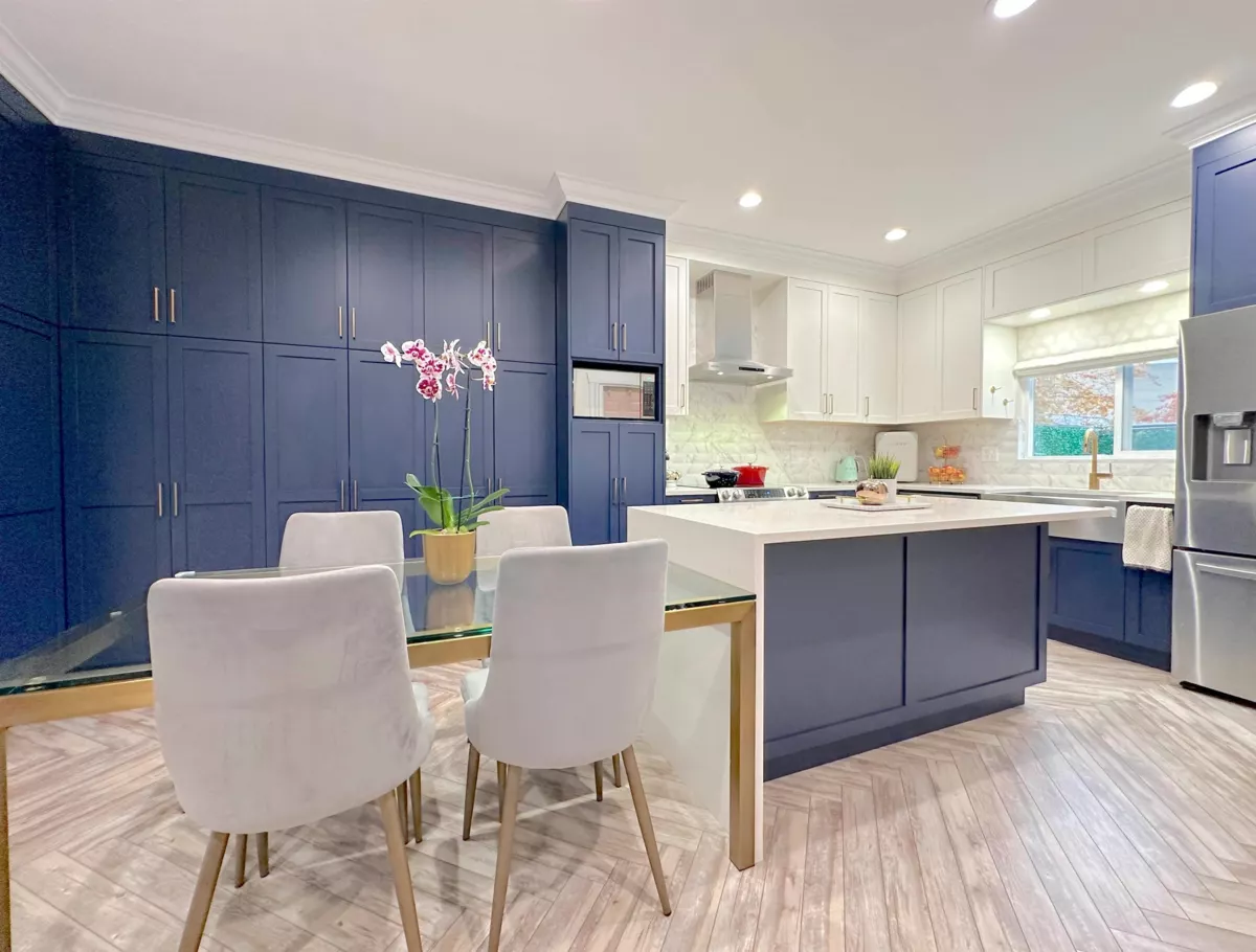 Beautifully renovated duplex-style townhouse! Welcome to Jasmine Court, a show-home-ready 2-level townhome featuring 3 bed/2.5 bath + den transformed into a luxurious walk-in closet w/custom cabinetry. The kitchen impresses w/extensive custom cabinets for storage, SS appl, marble countertops & designer herringbone flooring. Built-ins provide ample storage throughout. Efficiently designed office space w/built-in desk on upstairs landing. Primary bdrm offers custom bedside shelving, vanity, make up table—an organizer’s dream! This home also features wainscoting, crown molding, a striking glass staircase, radiant heating, A/C & 2 car garage w/an ultra-quiet opener. Walking distance to Anderson Elementary & McNeill Secondary + 5-minute drive to Shopping & transit.