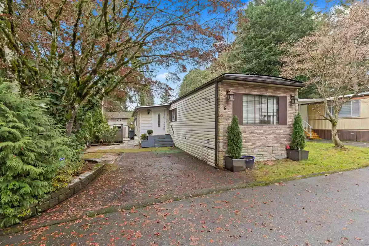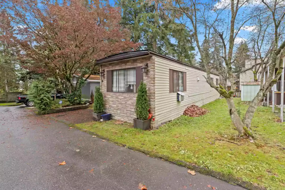 Welcome to this well-located manufactured home offering exceptional convenience and value. This single wide two-bed, one-bath residence is ideal for those 55+ seeking a peaceful, community-oriented lifestyle. With a monthly pad rental fees and with no strata fees this is located in a well managed park. The property includes beautiful cedar hedging for added privacy and even a mature pear tree in the backyard—perfect for anyone who enjoys fresh fruit. One pet is permitted, making it a great option for animal lovers. Situated centrally on King George Blvd in Surrey, you’ll appreciate being just minutes from shopping, schools, and major highways. Easy to show. Sold “ As is - Where is” and needs TLC throughout. Subject to park approval.