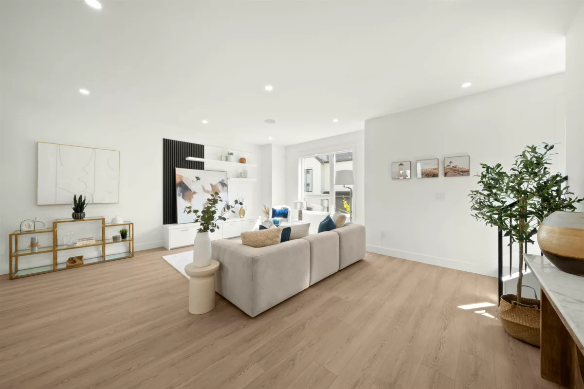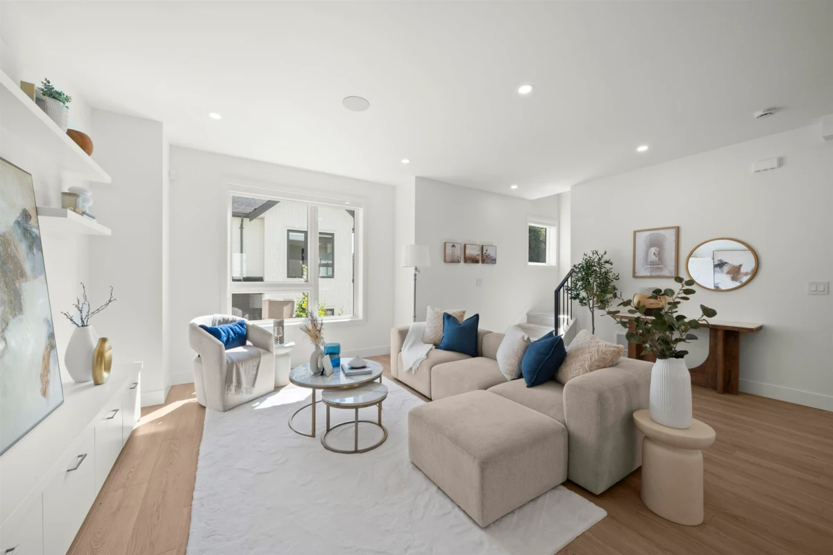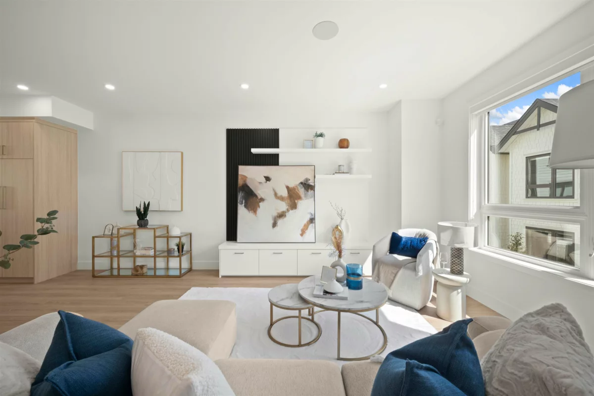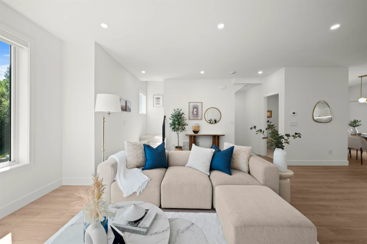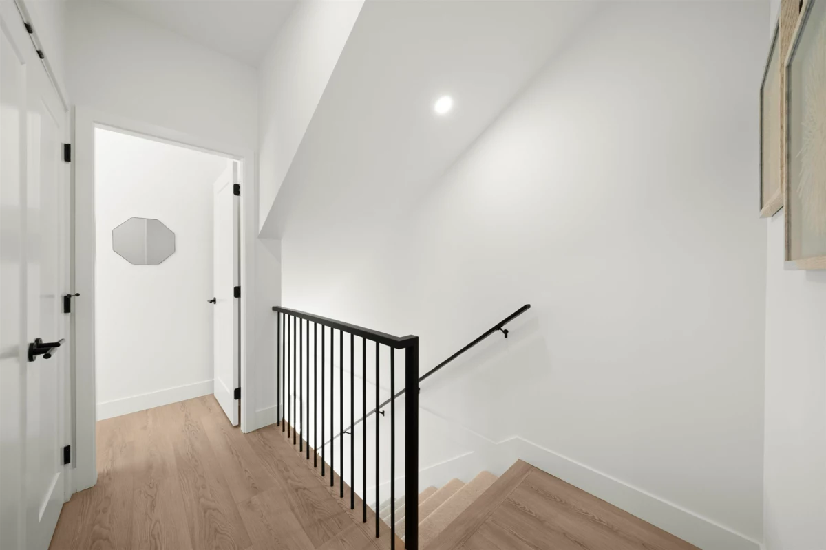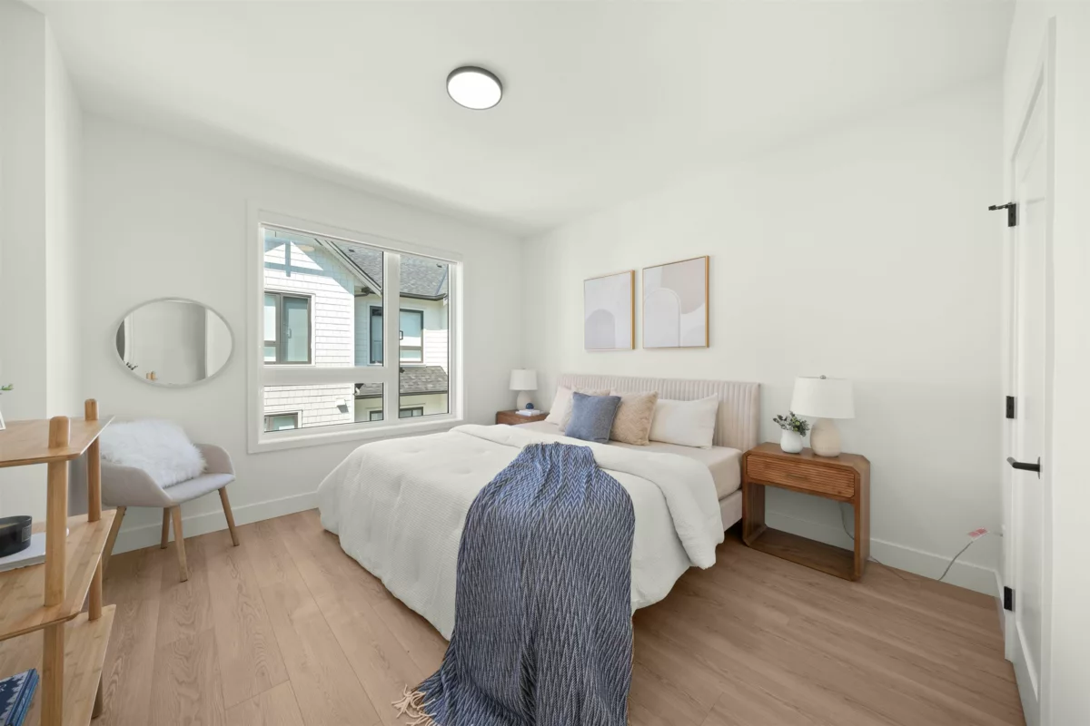 Onyx & Ivory: Set in a prestigious neighbourhood, surrounded by greenery. High-end finishes incl: European appliances, gas stove, large island w/ waterfall, quartz counters/backsplash, LED pot lights, designer light fixtures & e-poxy in garage. Spacious 4 bed + flex (C4 plan) w/ all of the bells & whistles of a detached home! Dbl garage, low strata fees. Bedrm + bath in bsmt, w/ a flex/office space above. Open kitchen/living/dining & powder room on main level w/ balcony & bbq gas outlet. Primary bedrm w/ WIC & ensuite w/ duel vanities. 2 more good sized bedrms + bath & laundry upstairs. Wide-plank laminate up & down, forced air, central A/C, & millwork incl. MOVE IN READY - 5% deposit only! Photos are of E2 Plan. #60 is in the 'Onyx' colour scheme. SHOW HOME OPEN SAT-THURS 12-5.