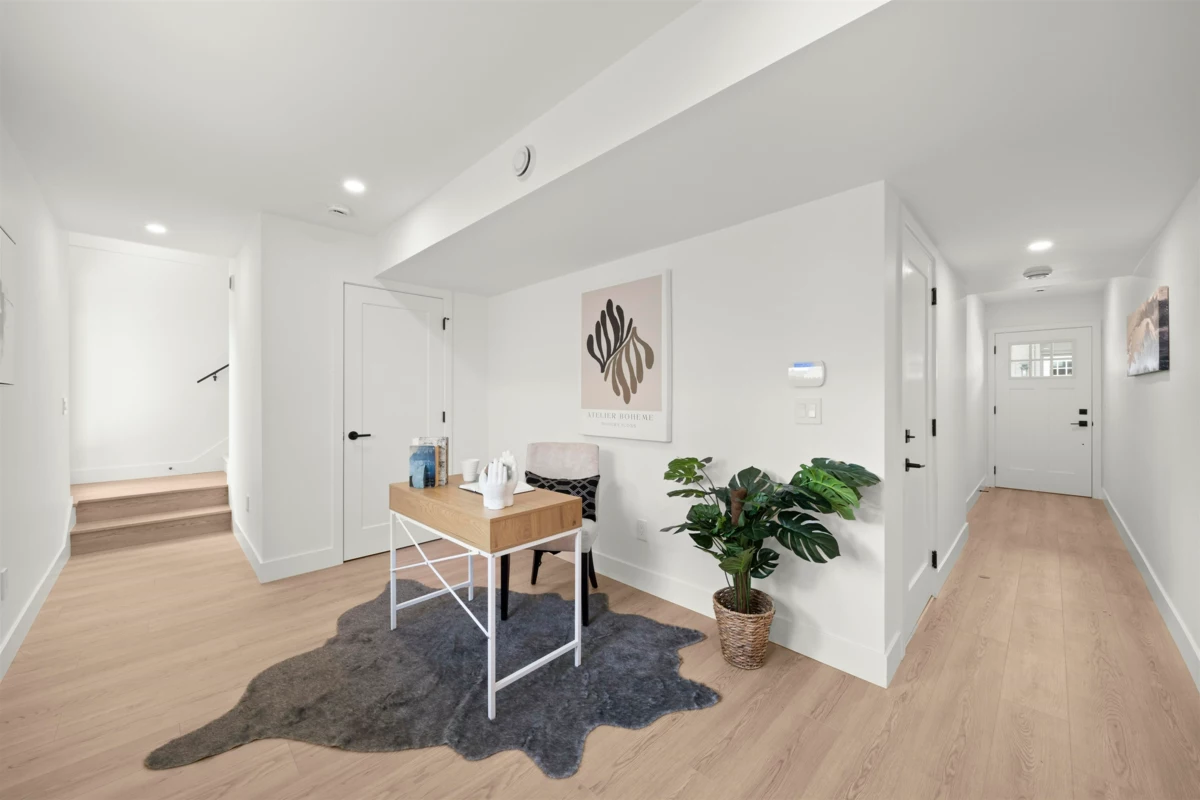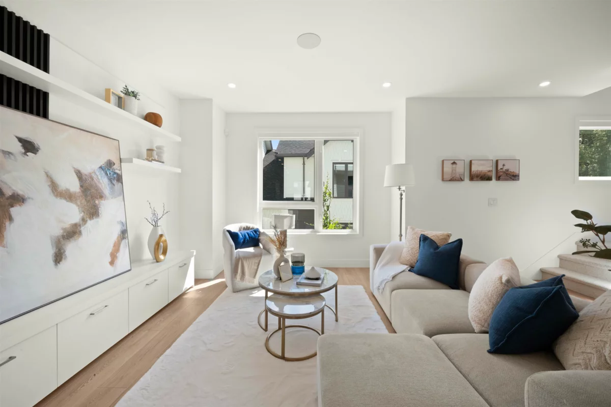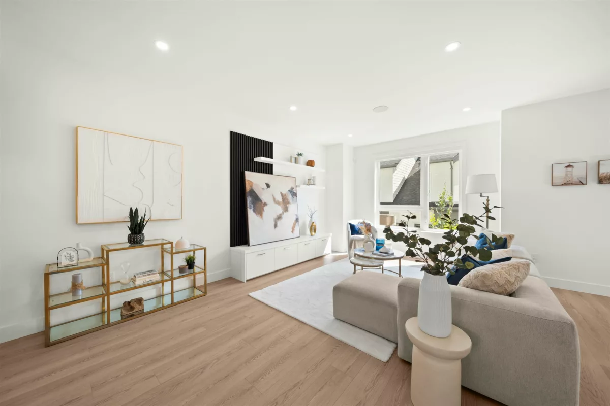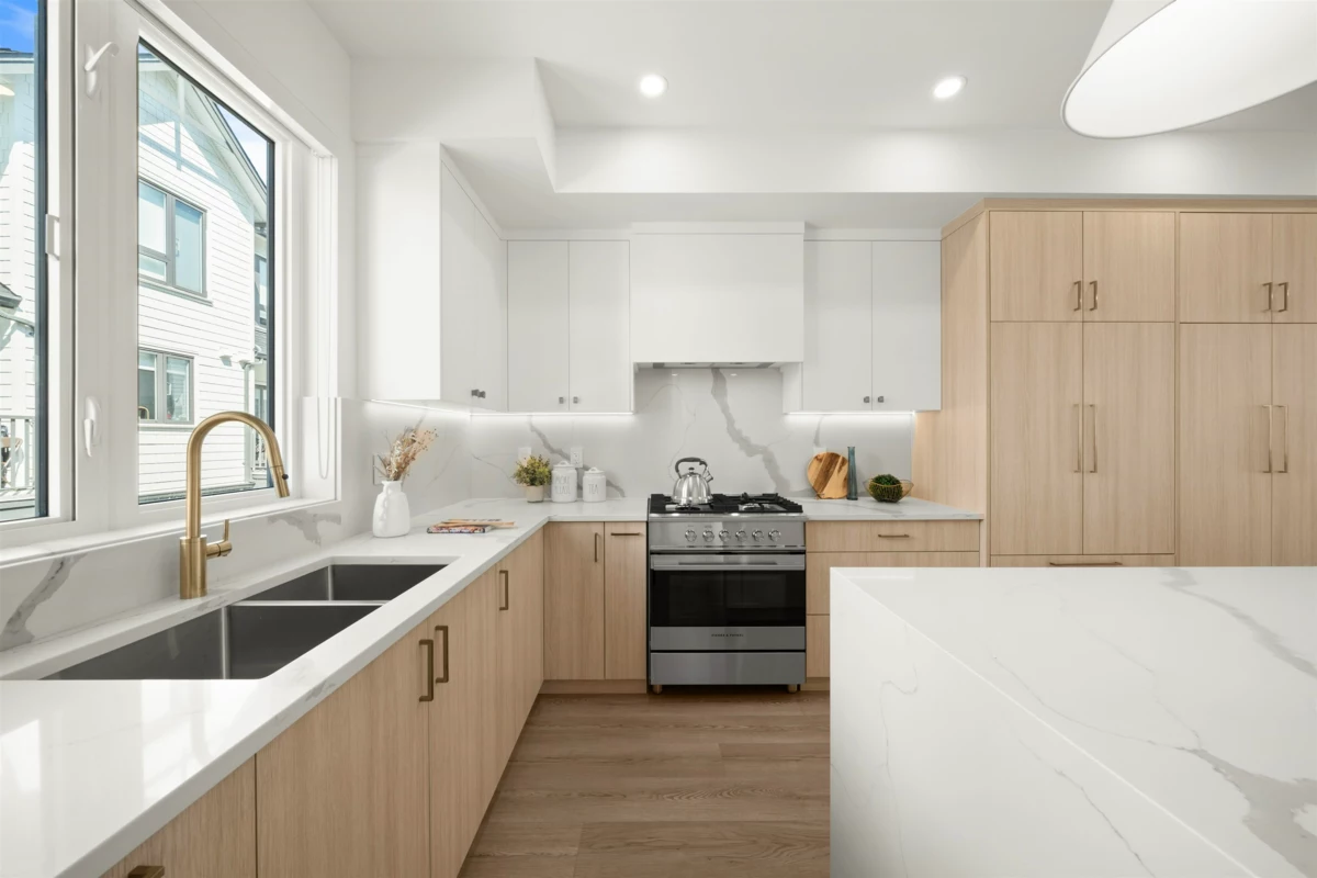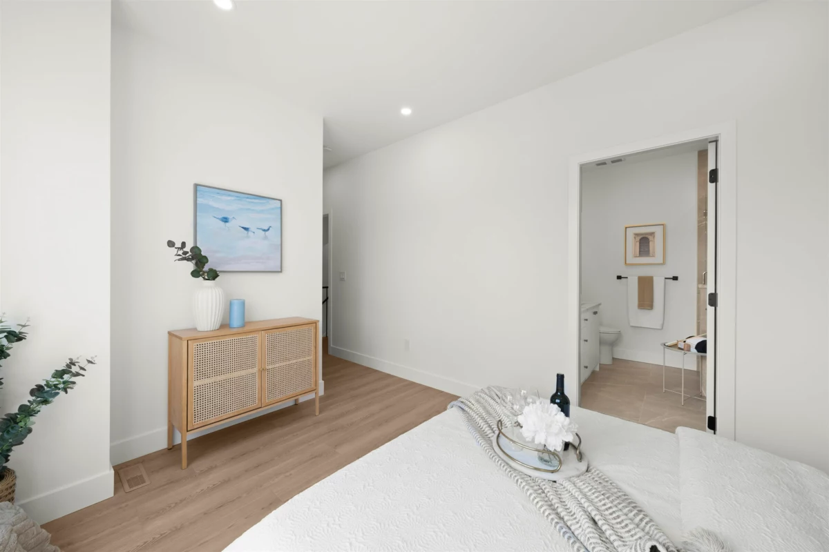 Onyx & Ivory: Set in a prestigious neighbourhood, surrounded by greenery. High-end finishes incl: European appliances, gas stove, large island w/ waterfall, quartz counters/backsplash, LED pot lights, designer light fixtures & e-poxy in garage. Spacious 4 bed + flex (C4 plan) w/ all of the bells & whistles of a detached home! Dbl garage, low strata fees. Bedrm + bath in bsmt, w/ a flex/office space above. Open kitchen/living/dining & powder room on main level w/ balcony & bbq gas outlet. Primary bedrm w/ WIC & ensuite w/ duel vanities. 2 more good sized bedrms + bath & laundry upstairs. Wide-plank laminate up & down, forced air, central A/C, & millwork incl. MOVE IN READY - 5% deposit only! Photos are of E2 Plan. #60 is in the 'Onyx' colour scheme. SHOW HOME OPEN SAT-THURS 12-5.