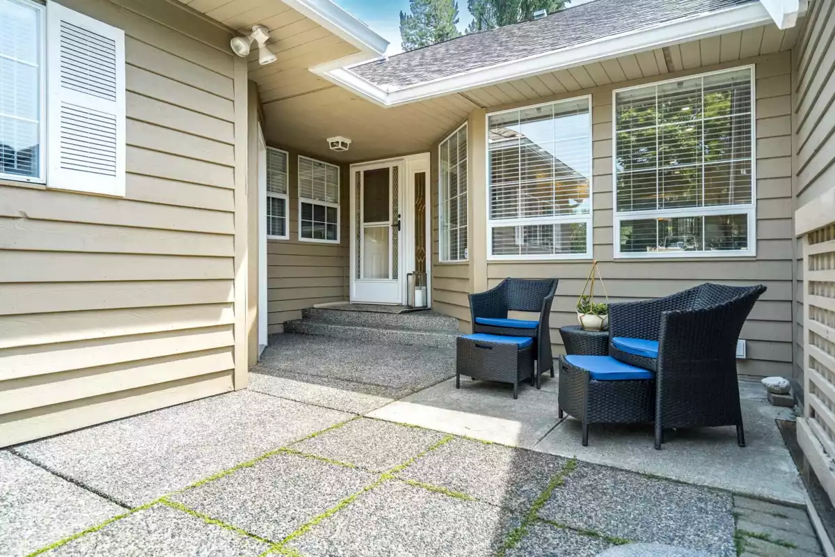 Substantially renovated 2-bedroom/ 2 bathroom rancher townhome in Murrayville’s premier 55+ gated complex, Cedar Crest Estates! Entering this completely & tastefully updated home, you’ll discover a stunning kitchen w/ white shaker cabinetry, quartz counters including breakfast bar, stainless appliances, & adjacent family room. Bright & open living area features large windows, corner gas fireplace, & adjoining dining room w/ sliding door access to the sunny, south-facing patio; ideal for summer entertaining & BBQs. The spacious primary bedroom suite offers double closets & a 4-pc ensuite. Second bedroom, full 3-pc bathroom, & laundry/utility room. Double garage w/ retractable ladder to attic storage. Close by street parking options & near shopping, cafes, hospital, & WC Blair Rec Centre.
