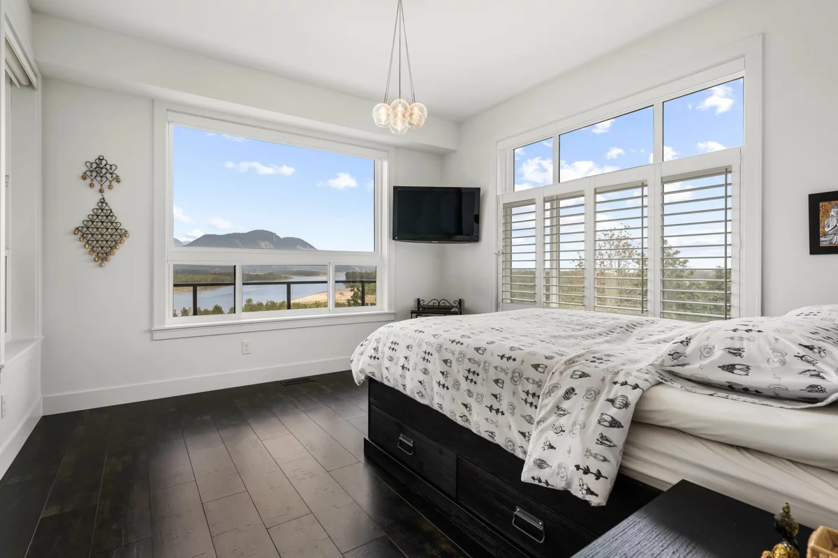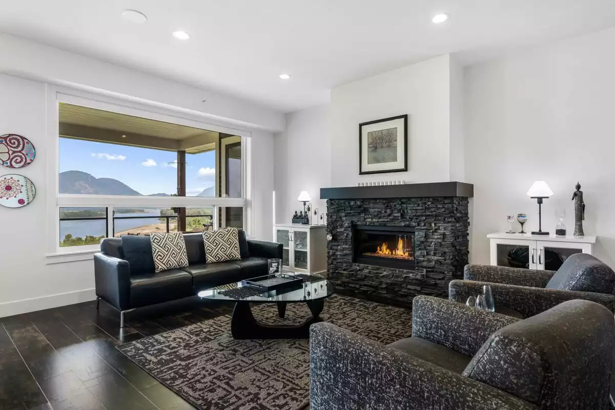 Premium location with unobstructed Fraser River views! This end-unit rancher with walkout basement offers 3 bedrooms & 3 baths. Thoughtfully upgraded with black Italian ceramic tile, Armstrong laminate, custom closet systems, extended kitchen cabinets to ceiling with LED lighting, quartz counters, LG appliances, A/C, EV charger, and premium Savannah fireplace with built-ins. Enjoy privacy shutters, added master bedroom window, finished storage, upgraded bathrooms, and pre-wired premium Polk Audio sound. Immaculate and move-in ready—luxury living at Seasons at Cedar Sky!