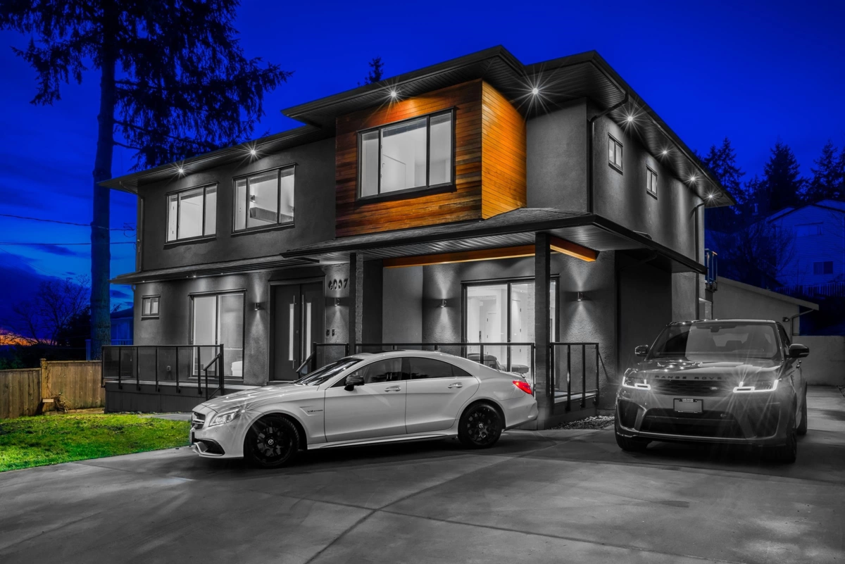 This brilliantly designed custom-built residence in Burnaby South is situated on a private and gated 8,646 SQ FT property. The exceptional craftsmanship and exquisite selection of materials, define this 7 bedroom and 7 bathroom luxury residence offering every modern convenience imaginable with a blend of comfort and refined elegance. The home offers over 4,640 SQ FT of expansive living on three grand levels incorporating a stunning modern interior with white porcelain floors and custom accents throughout. Experience large principal rooms and a spacious floorplan ideal for large families with an active indoor-outdoor lifestyle. This home is conveniently located close to Glenwood and Clinton Elementary Schools, Connaught High School, Ron Maclean Park, and Highgate Village Shopping Centre.