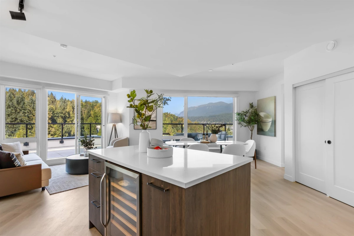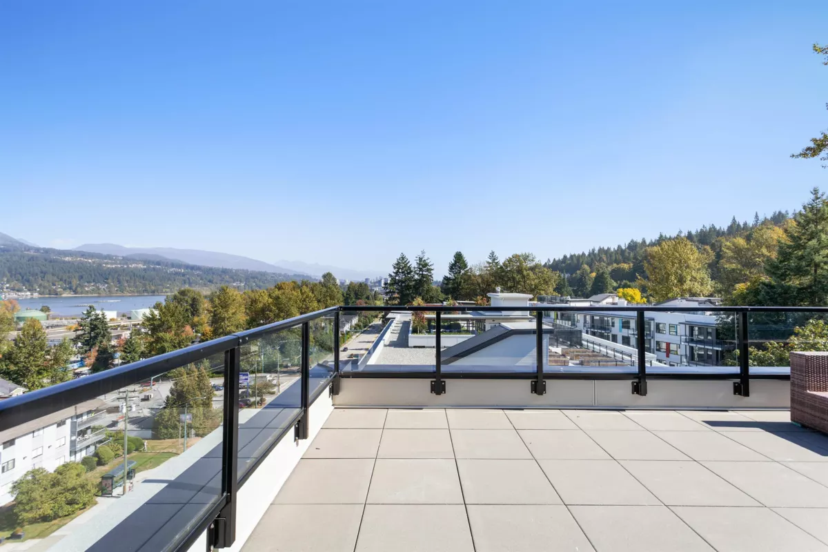 Experience the pinnacle of Port Moody living in this exclusive North Tower Penthouse at Anchor. Featuring 3 Bedrooms + Den, 2 Baths, 1,153 sq.ft. of sophisticated living and a spectacular wrap-around deck over 1,000 sq.ft. Enjoy breathtaking views of the Inlet, North Shore Mountains & surrounding woodlands. Just 15 mins to Downtown via Barnet Hwy & within 10 mins to Rocky Point Park, Coquitlam Centre, Lougheed Mall, SkyTrain & Brewery District. Never released in presale—first to market!