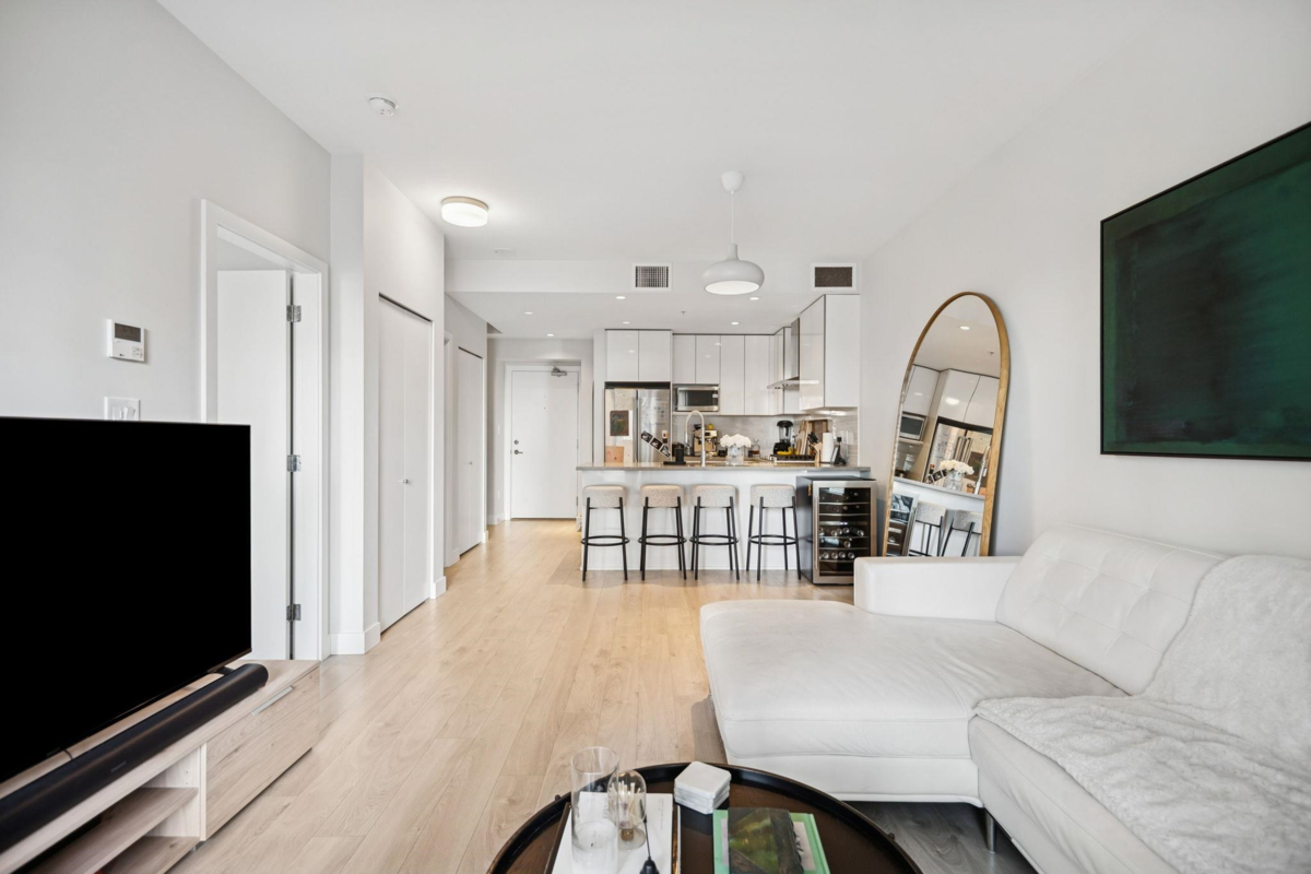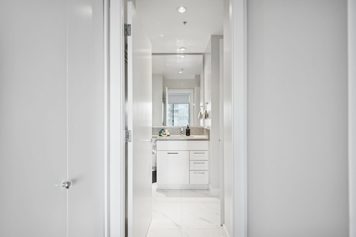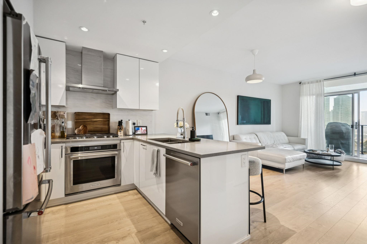 Escala - the height of luxury in Burnaby. This like-new, large, quiet & private 1-bed + den home has everything you want & need. A chef's kitchen equipped w/ S/S Kitchen-Aid natural gas appliance package & quartz counters. The primary suite easily fits a king-sized bed, has a large functional walk-in-closet & a spa-like ensuite w/ a deep soaker tub. Year round comfort w/ AC. Outside, you'll find additional living space w/ your fully covered balcony oasis. Escala comes w/ hotel-like 5-star amenities: concierge, swimming pool, sauna, hottub, fitness facility, yoga studio, movie theatre, guest suites & an incredible social lounge. UNBEATABLE location: Gilmore SkyTrain, revitalized Brentwood Mall, restaurants, cafes, shopping & all the best Burnaby has to offer! One parking & storage locker!