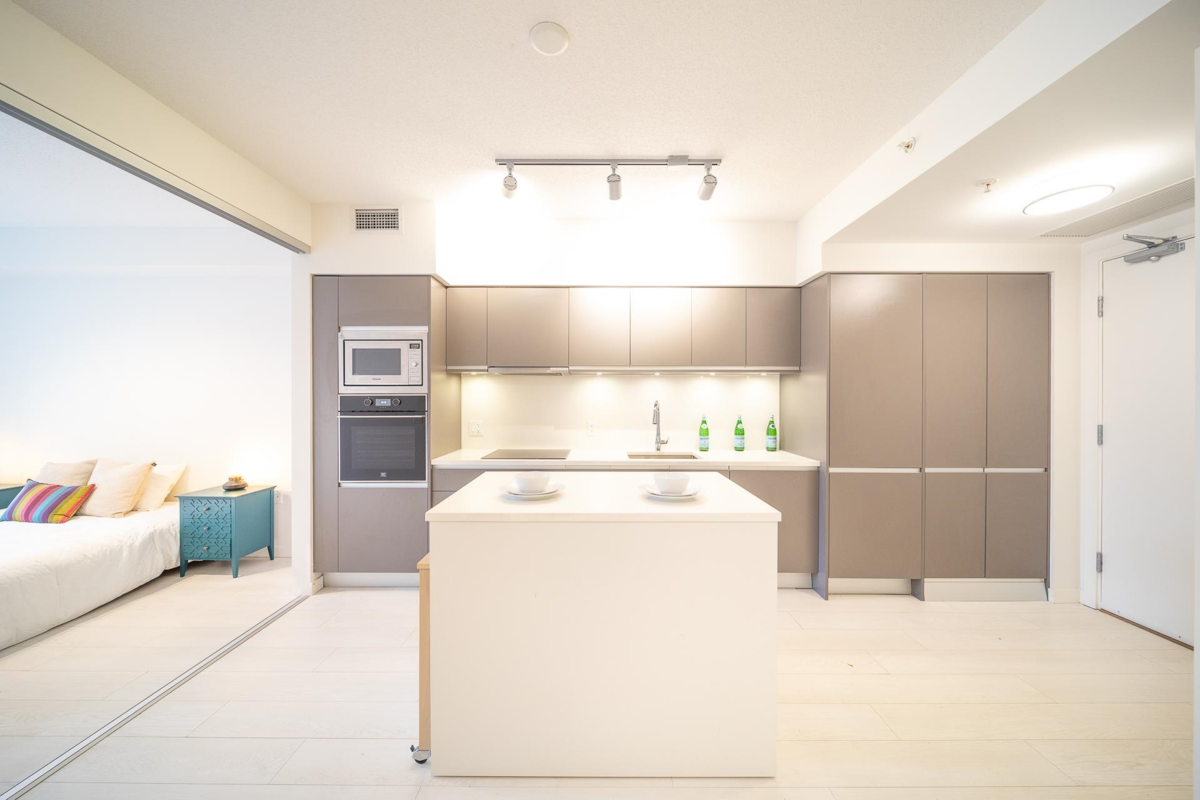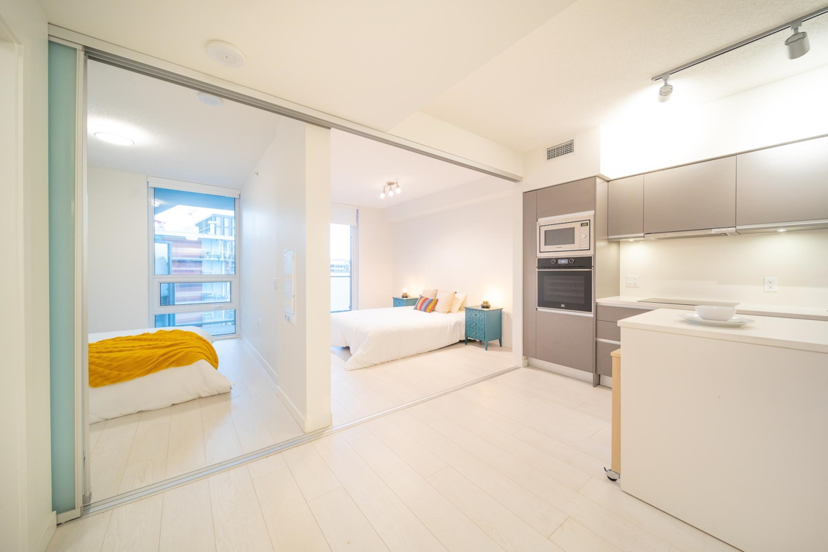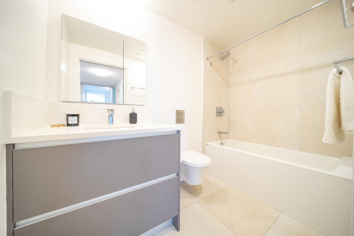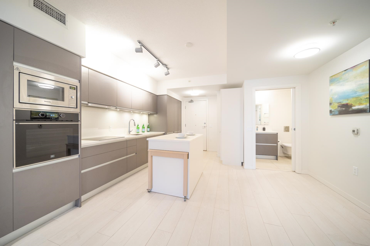 Prime Location. Second + Main, Urban 2 Bedroom + 1 bath plus flex/storage room. Bright southwest quiet unit w/ large balcony facing courtyard. Amenities: Large building floor-plate rooftop area w/ 2 BBQ areas, kids playground, garden area, lounge room w/ kitchen & fitness room. Walking distance to 3+ skytrain stations: Olympic Village, Main, VCC-Clark, Future Broadway & Main Station. Located in Mount Pleasant neighbourhood right next to Olympic Village. Walking distance to Telus Sphere, Earnest Ice Cream, Mario's Gelato, Starbucks & many restaurants. This unit has a Developer assigned EV rough-in Stall w/ the outlet plate right in front of the stall. Strata has quotes for the outlet. Act fast. This high rental area unit is great for investment or personal use. Short term rentals allowed.
