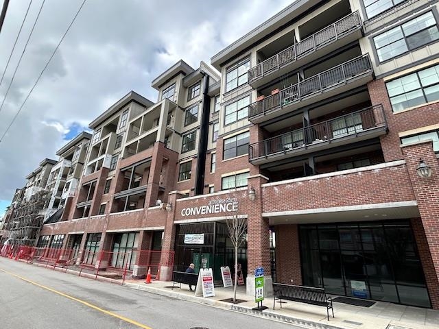 Brickwater 4, the Final Phase! Crafted by Falcon Homes, Brickwater epitomizes Maple Ridge condominium living. This expansive 915 sq.ft, 2 Bed, 2 Bath penthouse faces north, offering captivating Village Gardens views. Enjoy a gourmet kitchen with premium stainless steel appliances, gas range, quartz countertops, & a spacious pantry. The spa-inspired ensuite features an oversized zero-threshold shower, double vanity, & designer tile. Stay comfortable year-round w/ ductless-split AC/heating. Plus, revel in a private balcony, 14 ft ceilings in living areas, electric window blind controls, soft close cabinets, & toilet seats. Benefit from tandem 2 parking stalls, oversized storage locker, & vinyl flooring throughout. Experience luxury living at its finest in this meticulously crafted residence.