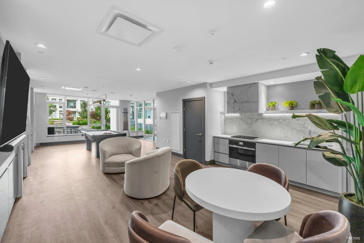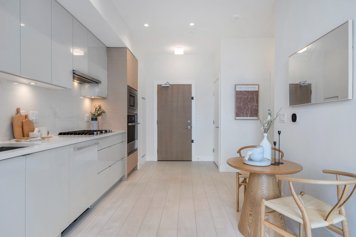 • NEW PRICE • This one is a MUST SEE. Unlike the higher floor plans, this 1 bed + den home features soaring 10.5'+ ceilings in both the living room and bedroom (w/a walk-in closet) creating an open and bright feel well beyond its 565 sq ft. Custom cabinets (by California Closets) in the bedroom and den add both style and smart STORAGE, while integrated, high-end, FULL SIZE appliances bring sophistication to the sleek and practical kitchen. Enjoy exceptional amenities like a state-of-the-art gym, theatre room, co-working space, guest suites, dog wash, workshop, concierge service and so much more. Located in Vancouver’s vibrant River District, with shops, trails, dining, and food trucks just steps away—this is modern, community living at its best. Parking and storage also included.