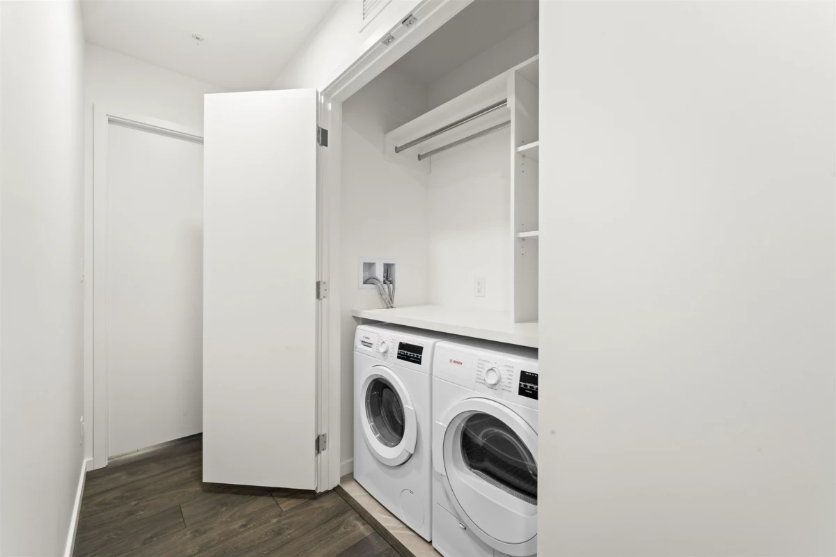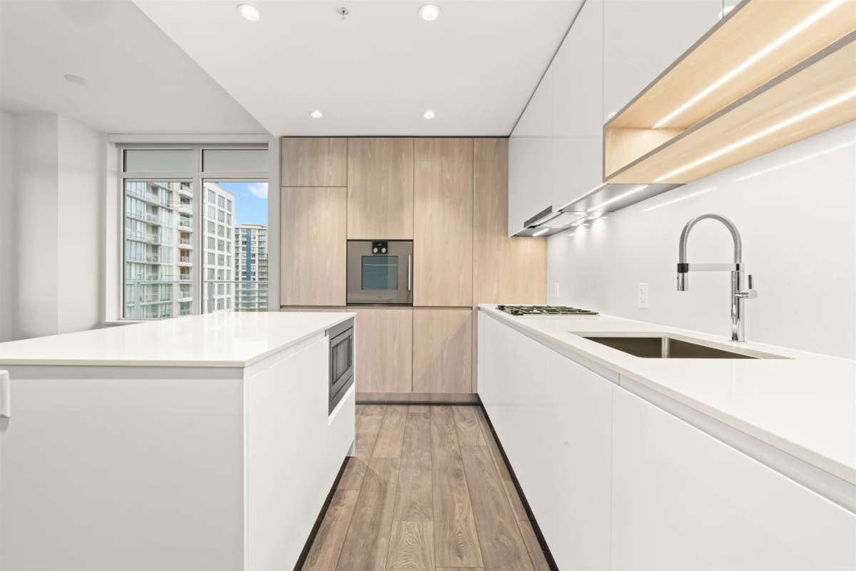 Brand new corner unit at CF Richmond Centre, ideally located on the 6th floor with a north-west exposure. This modern 2 bedroom, 2 bathroom home features a well-designed interior with European-style cabinetry and premium appliances, including a Gaggenau cooktop and oven. Near floor-to-ceiling windows flood the space with natural light and do not face neighbouring units, offering open city and mountain views. Enjoy outdoor living on the wrap-around balcony, perfect for relaxing or entertaining. Situated in the heart of Richmond downtown, steps to shopping, dining, transit, community amenities, and parks, with quick access to YVR, Oakridge, and Vancouver. Includes 1 EV-ready parking stall and 1 storage locker. A perfect blend of style and comfort. Open House Jan 18th Sun 2-4PM
