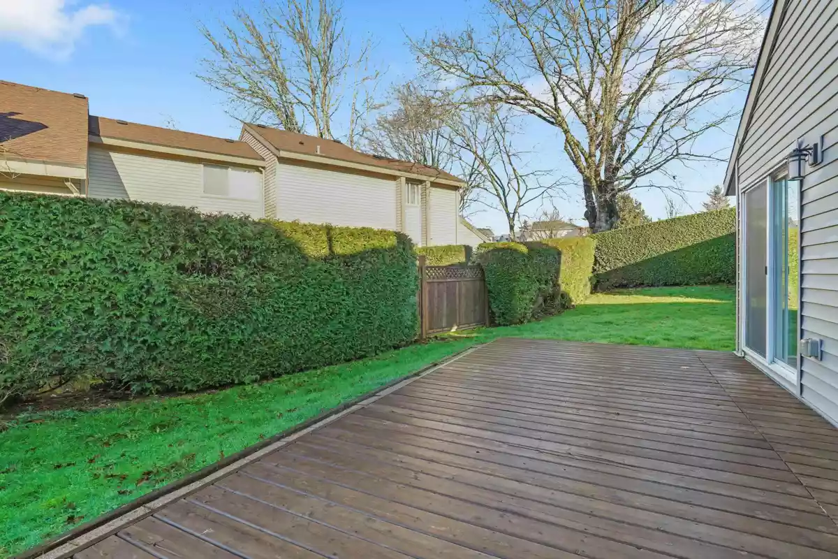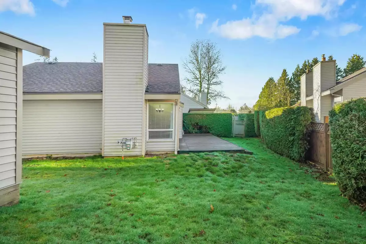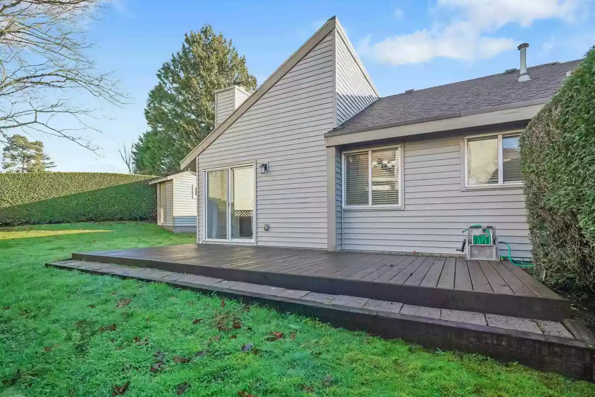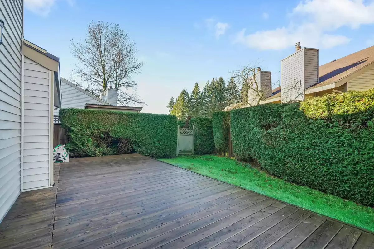 Welcome to Greenside Estates, this well maintained end unit rancher style townhouse is quietly located and just steps from the outdoor pool with direct access to Latimer Road Elementary School. Thoughtful updates include a newer kitchen with stainless steel appliances, updated backsplash, fresh paint, tile and laminate flooring, and a new gas fireplace in the family room. The expansive wraparound private yard offers a large sundeck ideal for summer entertaining & a generous grassy area for children to play. This is the perfect family home. Residents enjoy excellent amenities including an outdoor pool, basketball courts, clubhouse, and ample visitor parking. Ideally situated within easy walking distance to Willowbrook Mall & the future skytrain station!