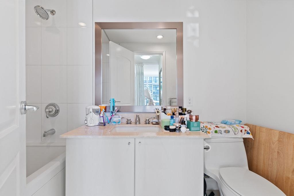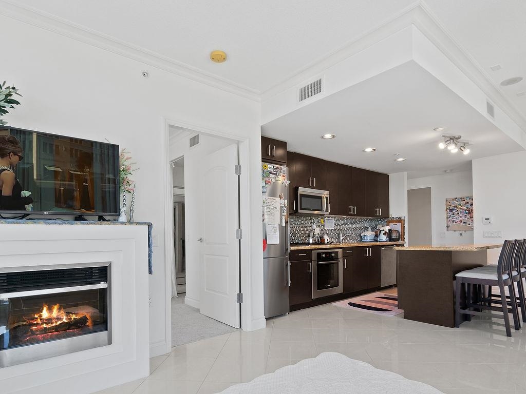 Living in Lower Lonsdale has it's privileges - you'll be steps to the ocean, seawall and the best amenities, shops and restaurants. This TWO BEDROOM corner suite in the Atrium building is close to the action, yet offers privacy and peace. This is the BEST FLOORPLAN with bedrooms on opposite sides! Appreciate the QUALITY FINISHINGS: 9ft ceilings, fireplace, AC, crown moldings, Bosch and Liebherr stainless kitchen appliances including a gas cooktop, soft close cabinets and granite countertops. Atrium features a 3,000sf amenity room complete with games area and kitchen. Owners also enjoy use of the fitness facility next door at the Pinnacle Pier Hotel with its INDOOR POOL, whirlpool, sun terrace, steam & sauna and GYM.