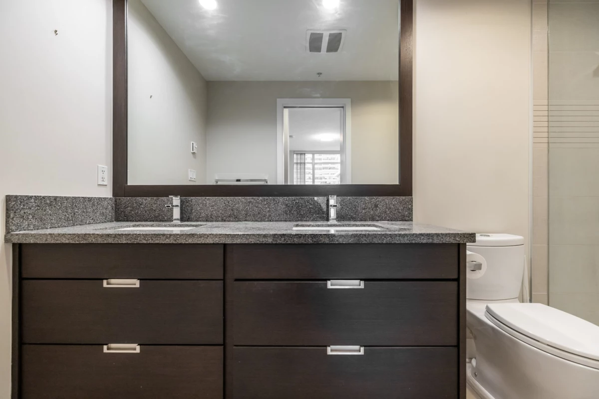 VANTAGE by BOSA luxury high rise living in the heart of Brentwood. Ideal for owner occupied living in a safe and secure building with 24 hour concierge. This east facing corner unit offers a comfortable and functional 2 bedroom 2 bathroom open concept layout with a generous 227 sq.ft. balcony facing East, the quiet side of the building. Features include 9 ft ceilings, high end finishes, stainless steel appliances and in suite laundry. Enjoy premium amenities, which includes lounge, fitness centre, sauna and hot tub. Just few steps to Brentwood Town Centre, SkyTrain, restaurants, Whole Foods and Costco.