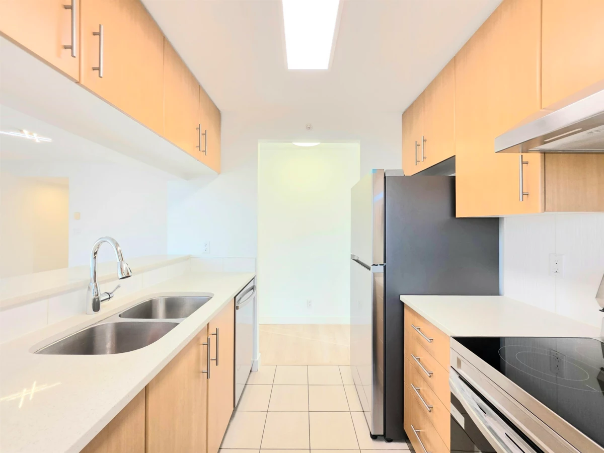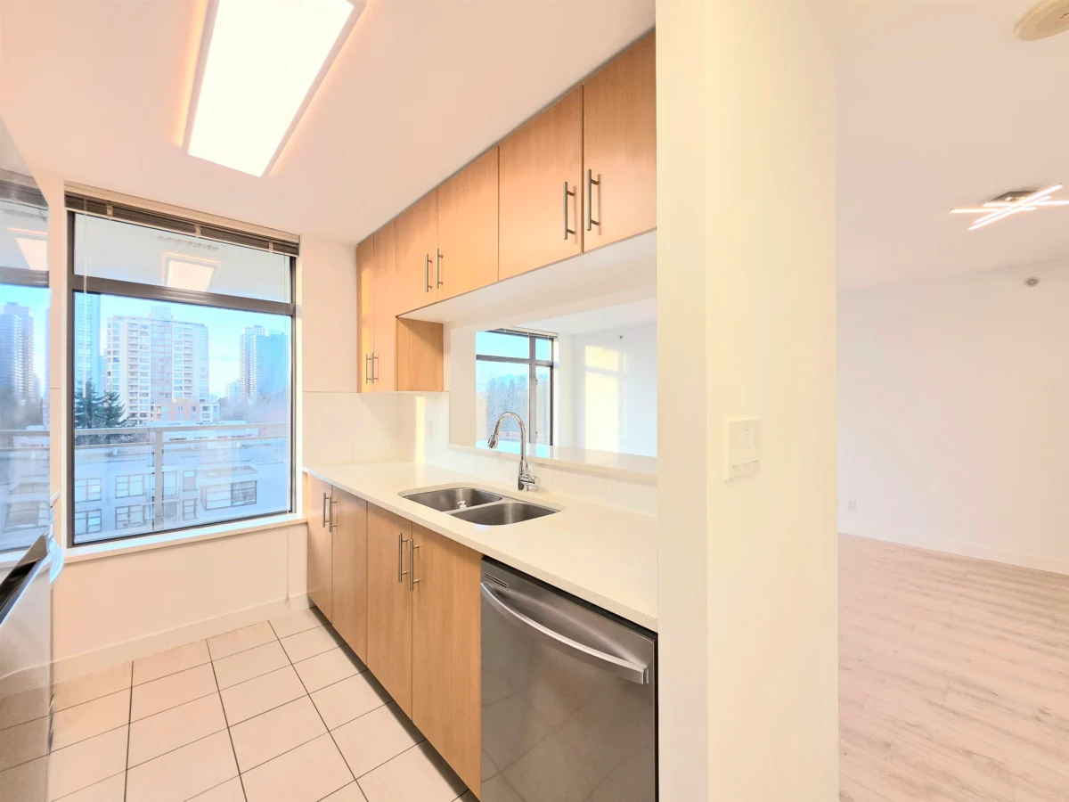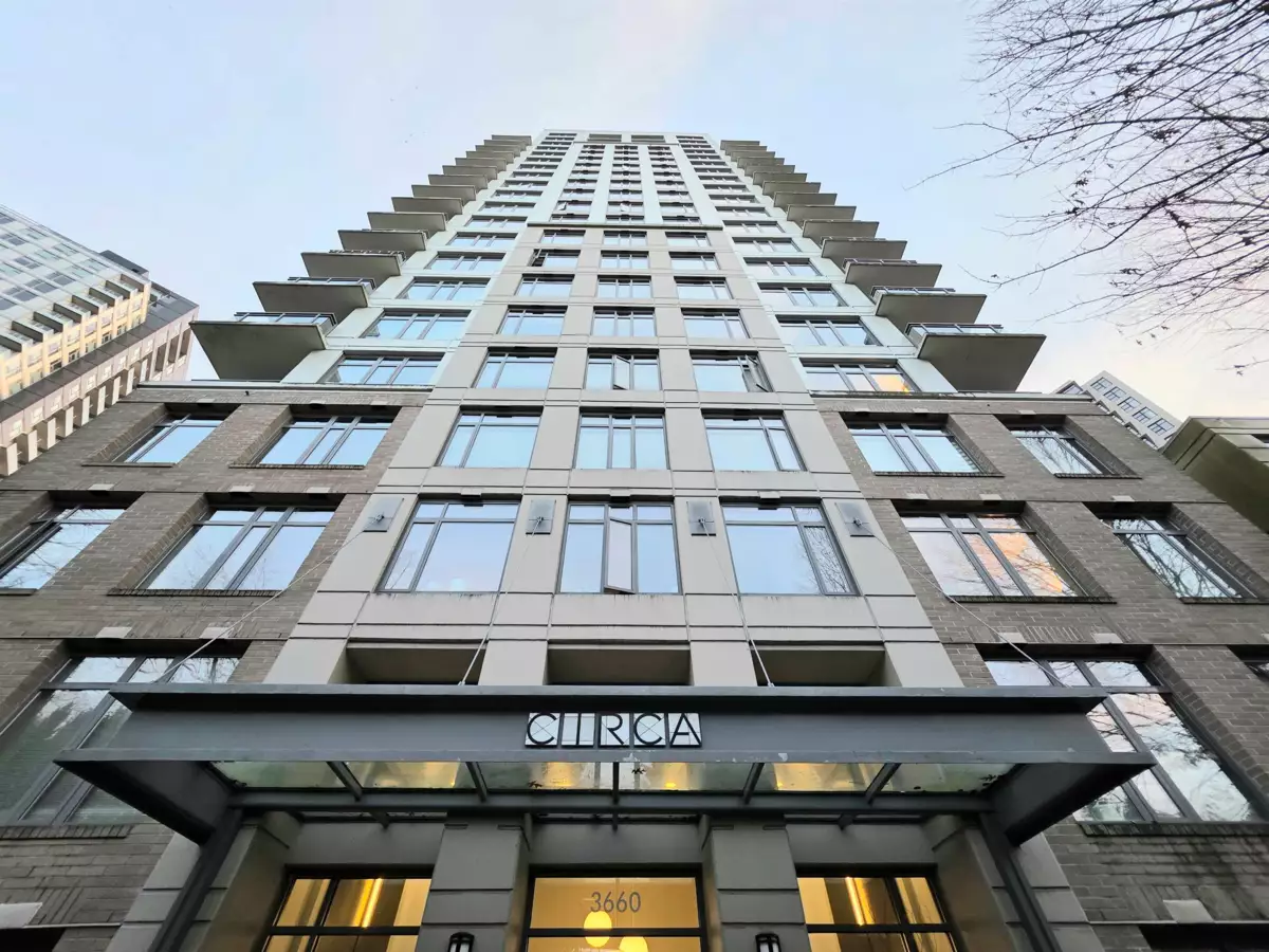 NEWLY UPDATED with fresh paint, new lighting, new laminate flooring, and BRAND NEW stainless steel appliances. Welcome to Circa by BOSA. This 2-bedroom, 2 full-bath corner residence offers stunning sunset and North Shore mountain views, overlooking a serene playground and beautifully tree-lined streets. The thoughtfully designed layout is filled with natural light and provides excellent separation between bedrooms, creating both comfort and privacy. Large windows frame the open outlook, making the home feel airy, calm, and inviting—perfect for both everyday living and entertaining. Located in a quiet yet highly connected neighborhood, just steps to Joyce–Collingwood Station, parks, and a full range of daily conveniences. OPEN HOUSE SATURDAY & SUNDAY FEBRUARY 7 & 8, 2:30-4:00pm.
