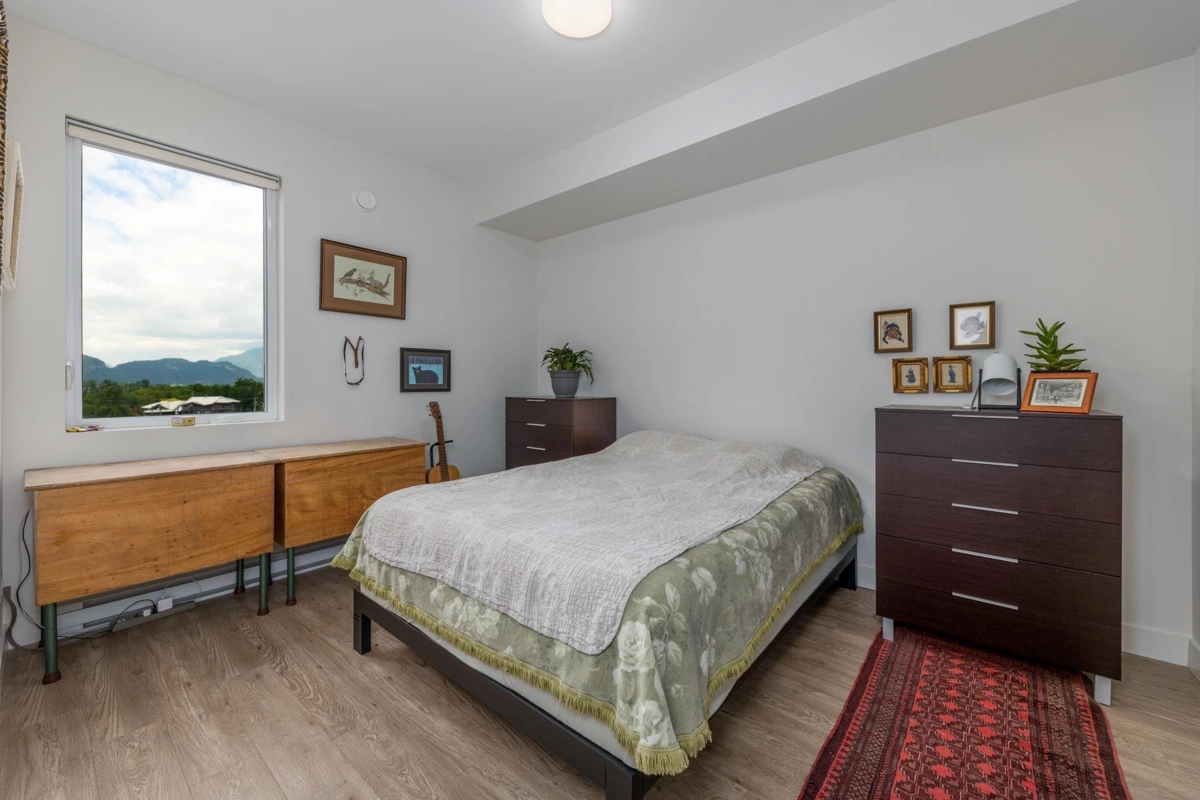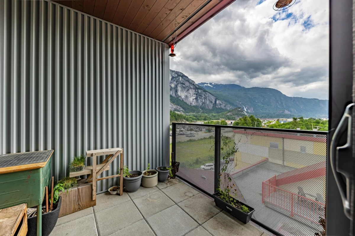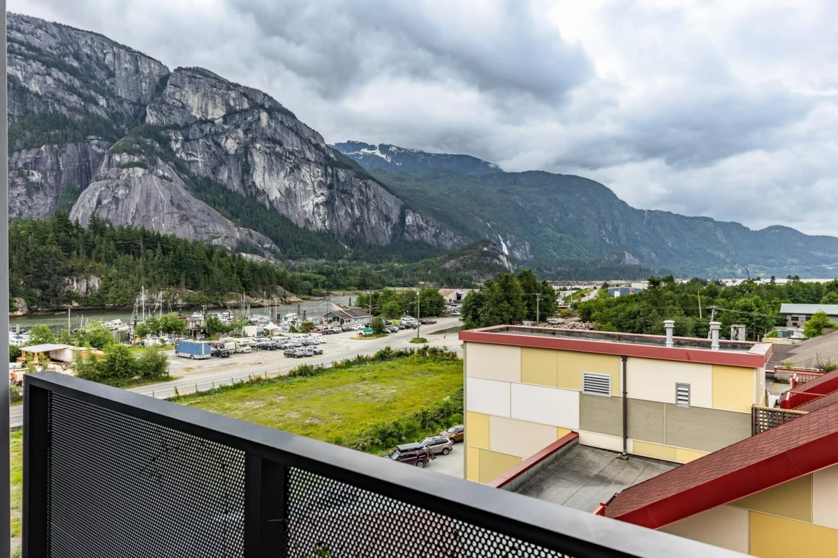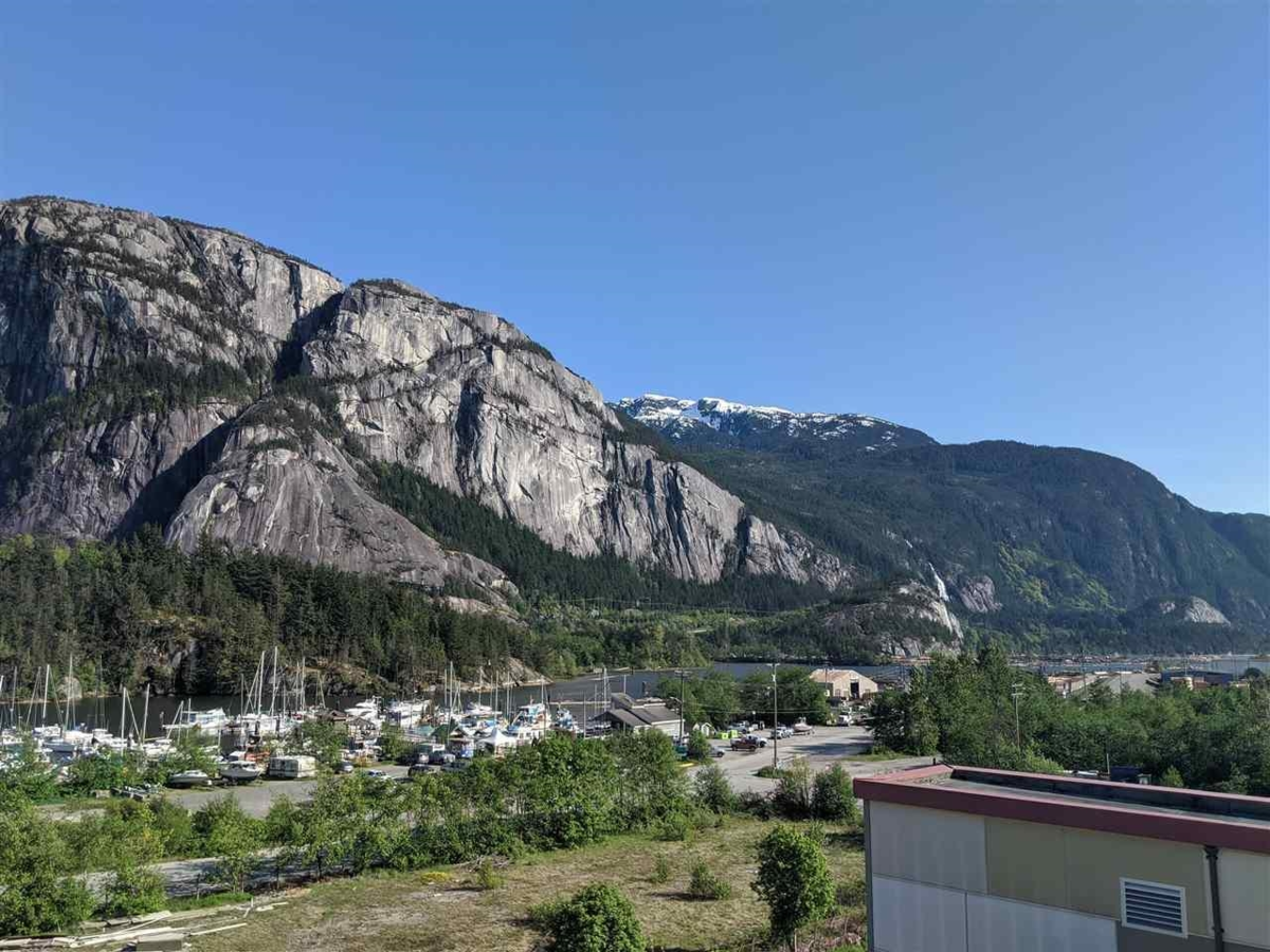 VIEWS, VIEWS & VIEWS. Howe Sound, Chief and Mountain beauty views await you from this top floor 1 bedroom condo, which is undoubtedly the best one bedroom in the building for views and natural light! Neatly appointed and well laid out floorplan with lots of bright south facing sunlight. With modern open plan modern living, this would make a great first home or investment buy with the future Oceanfront development just steps away! This is such a convenient location in Downtown Squamish and walking distance to all your everyday amenities like groceries, pharmacy, library and restuarants. Only 40 minutes to the North Shore and 40 minutes to Whistler!! Call for your private showing today!