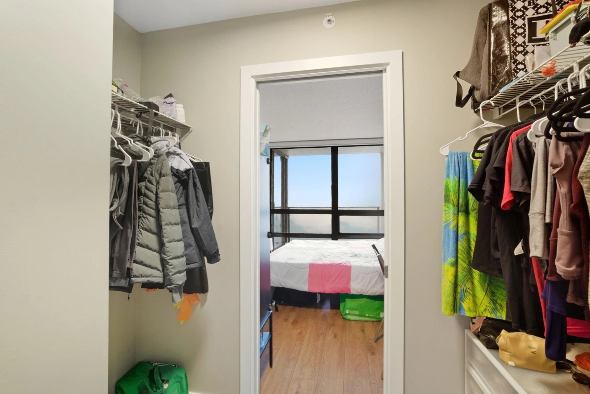 Welcome to Electric Avenue by Bosa - a sought after downtown address offering comfort and convenience in the heart of it all. This bright, well-designed home features two spacious bedrooms, each with walk-through closets and ensuite bathrooms, providing excellent privacy. Enjoy laminate and tile flooring throughout, an updated washer/dryer, quartz countertops, and a handy pantry and flex/office space. Overlooking the quiet courthouse roof, the suite offers a peaceful outlook amid the vibrant city with lots of privacy. Steps to Robson Street shops, top restaurants, movie theatre, and groceries. Includes secure underground parking, a fitness centre, and 24-hour concierge. Urban living at its finest.