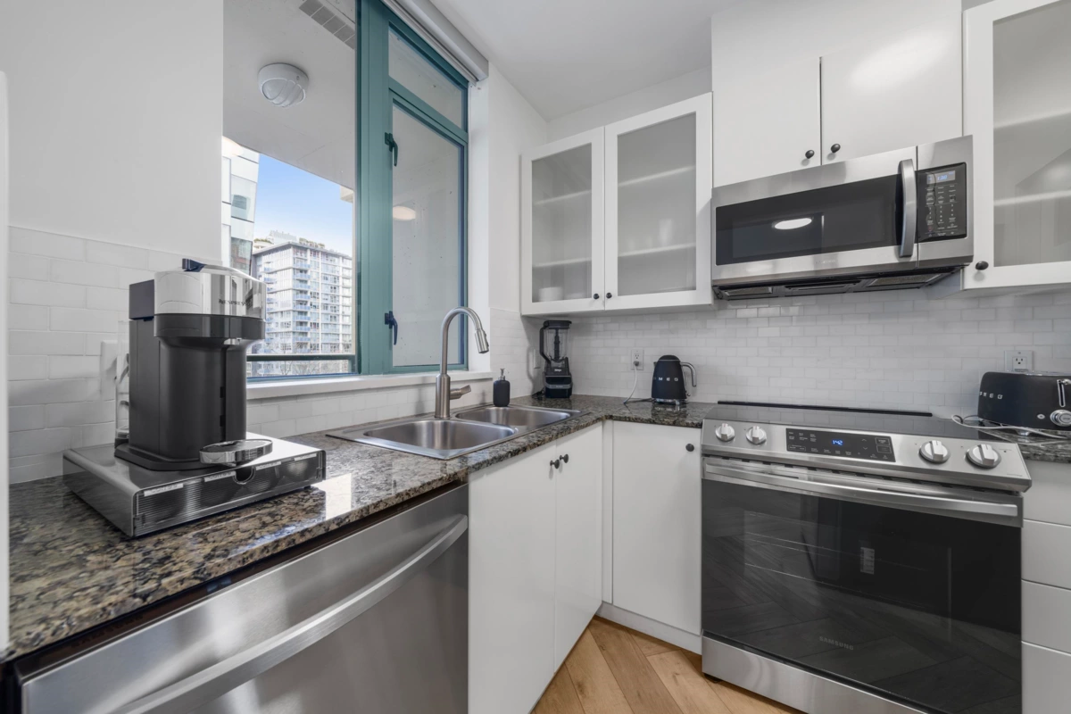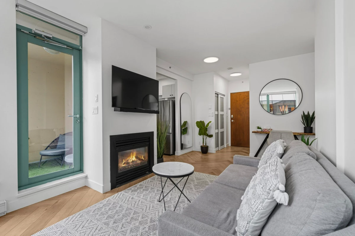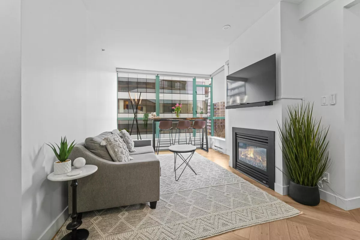 Absolutely gorgeous 1-Bedroom + Den home in the heart of Vancouver, boasting over $120,000 in premium renovations! This meticulously redesigned space features elegant herringbone flooring, a fully renovated kitchen & bathroom, smart lighting, power window coverings, and a cozy fireplace. High-end finishes create a chic yet inviting ambiance, perfect for a downtown professional. Enjoy the spacious floor plan of this well-maintained early 2000s building, offering top-tier amenities: steam room, sauna, gym, yoga studio & lounge. Steps from Davie Village, Yaletown, Sunset Beach & the Seawall. Pets allowed. Priced to reflect extensive upgrades & quality craftsmanship. OH Sat Dec 13, 12:30-2pm