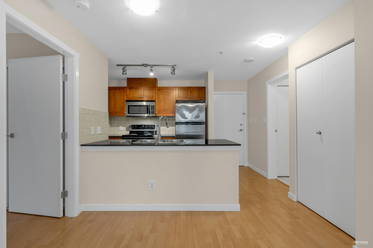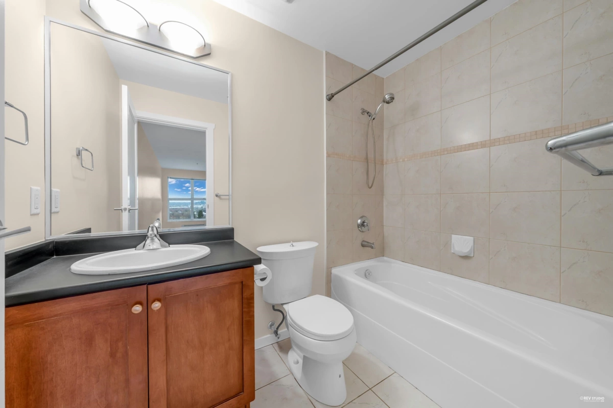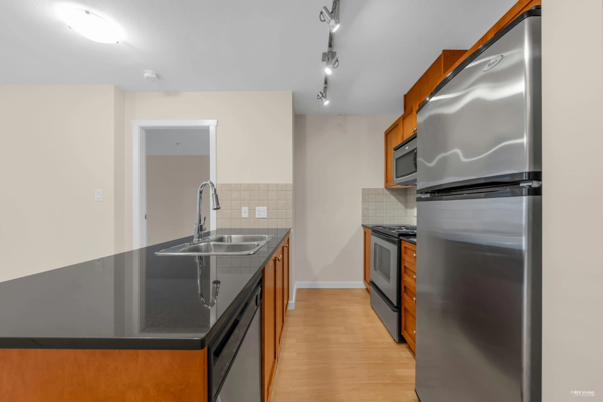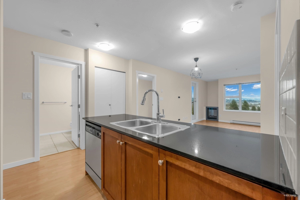 Welcome to San Marino - the concrete, mid-rise gem nestled in the heart of Sapperton. This bright and spacious 2 bed & 2 bath unit is thoughtfully designed, boasting open-concept living spaces and beautiful Fraser River views. The kitchen features granite countertops and S/S appliances. The extra-large primary bedroom offers tons of storage space and a private ensuite. Laminate flooring throughout for a modern, low-maintenance finish. Split-bedroom layout for added privacy. This unit offers the perfect balance of function, style, and location - steps away from Sapperton Skytrain Station, Royal Columbian Hospital, Shoppers Drug Mart, Save-On-Foods, many restaurants, parks and schools. Starbucks is just downstairs! This home delivers the lifestyle you've been looking for in New Westminster.