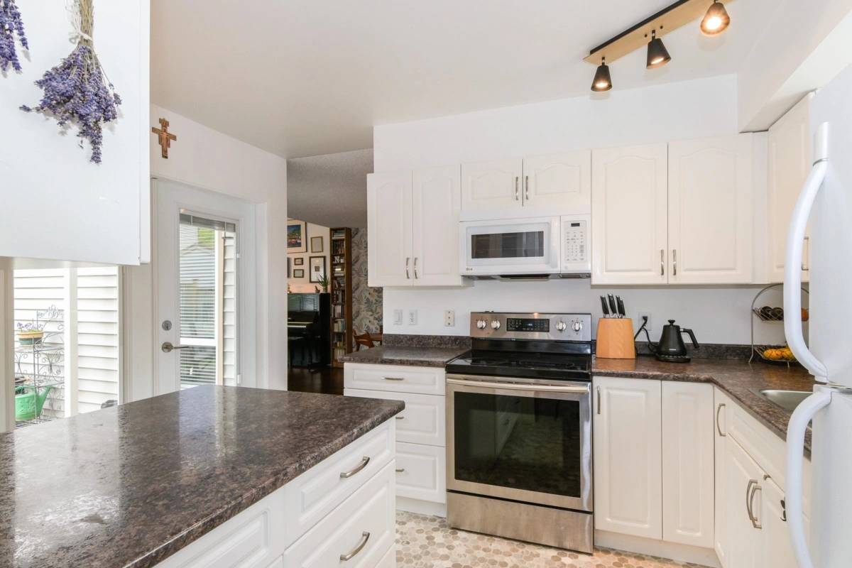 Welcome to Greenside Estates - a hidden gem on the Surrey/Langley border. This 2-bed, 1-bath end unit in the duplex-style townhouse feels like home! Fresh paint throughout, updated kitchen with peninsula seating, updated bathroom, 2 side-by-side parking stalls, storage shed, and a very spacious yard - complete with spacious deck and a Lumon deck cover for year-round use. This complex boasts a parklike setting w/beautiful green grounds & awesome amenities, including the summertime staple - an outdoor pool! Located just mins away from schools, shopping, recreation, & transit - including the upcoming skytrain extension. Well maintained complex w/a healthy contingency, plus - no size/breed restriction on dogs. Join this genuinely friendly community today!