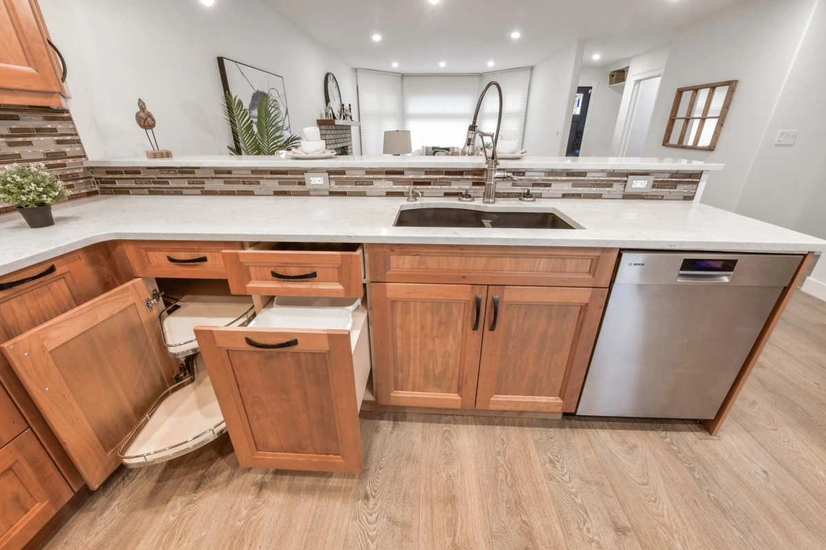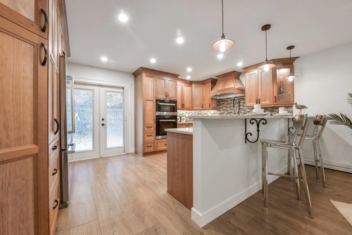 Looking to downsize but want something almost new? This remodeled rancher has the luxuries of a large home. A fabulous kitchen designed and built by Columbia Kitchens. New bathrooms. All major items in the home have been replaced. Beautiful new German floors, Navien Hot water system, luxurious meile appliances, built-in vacuum in the wall, French doors in master bedroom, newer deck. The list is long of renovations and are available in the feature sheet. Very quiet location on a no through street - all flat and close to shopping and transportation. Immediate occupancy possible. Easy to view.