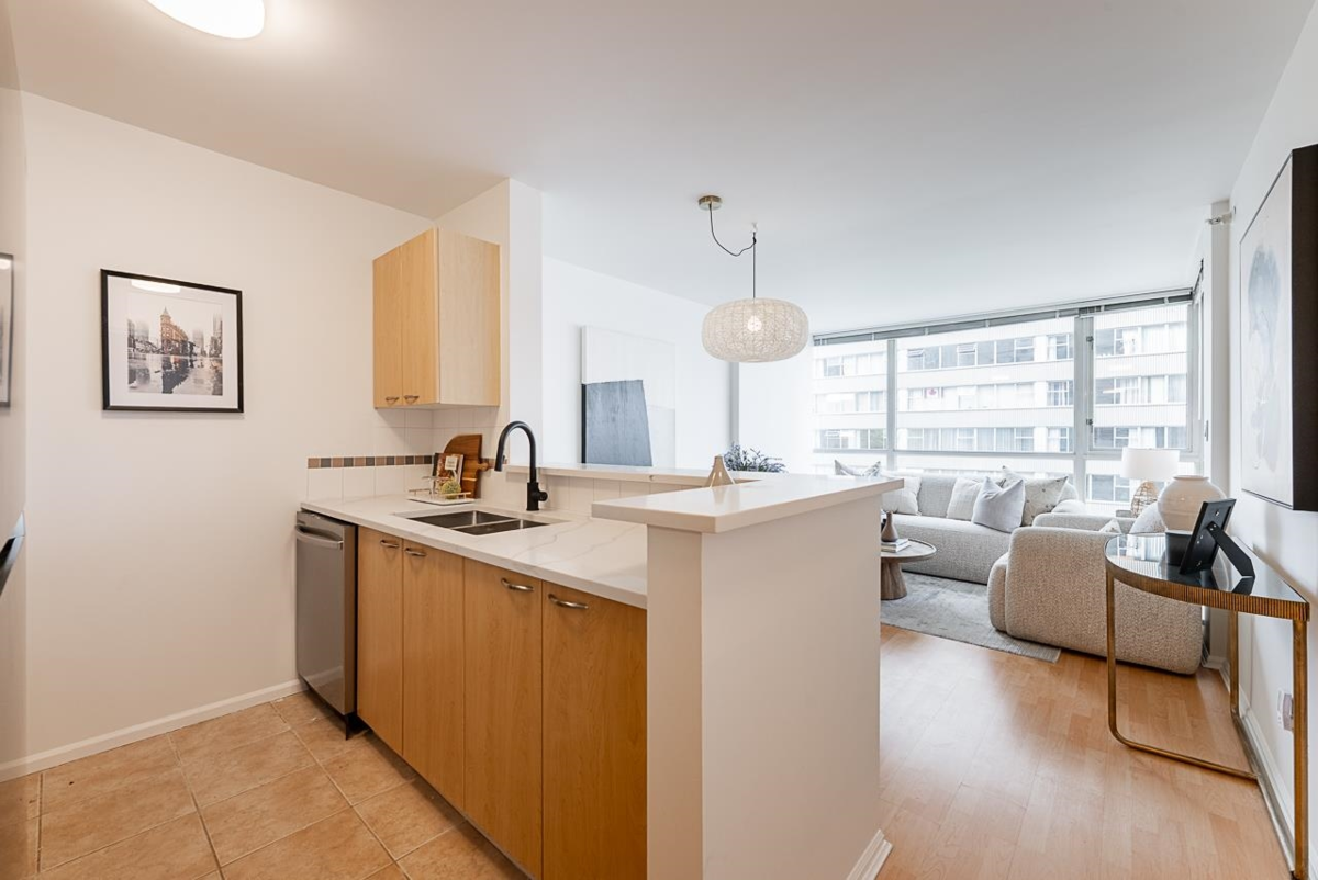 Perfect for investors or owner occupier. West End/Coal Harbour 1 bedroom 1 den/flex 561 sqft. Brand new appliances, quartz countertop and new paint. Perfect City living at its finest. Featuring spectacular views of city and a bonus peekaboo ocean view from the balcony. Unbeatable location just minutes from Stanley Park, Robson Street, Denman, Shopping, Restaurants and so much more. The George is a well maintained concrete building with $4.2 million in reserves ! Move in bonus for the Buyer to fresh up the whole unit. Or the best rental income generator. Act fast. Won't last long.