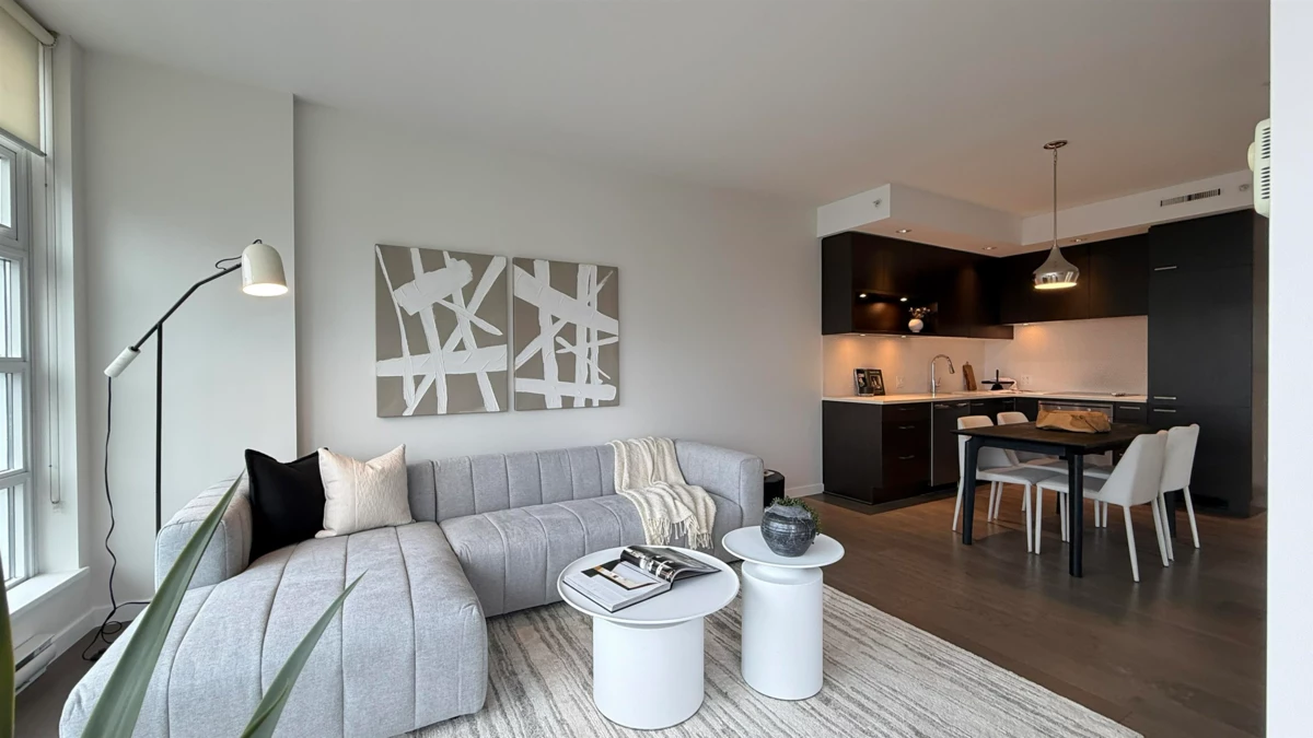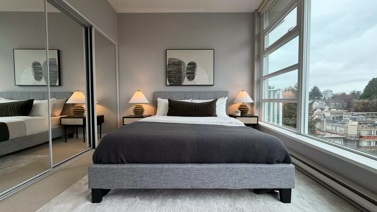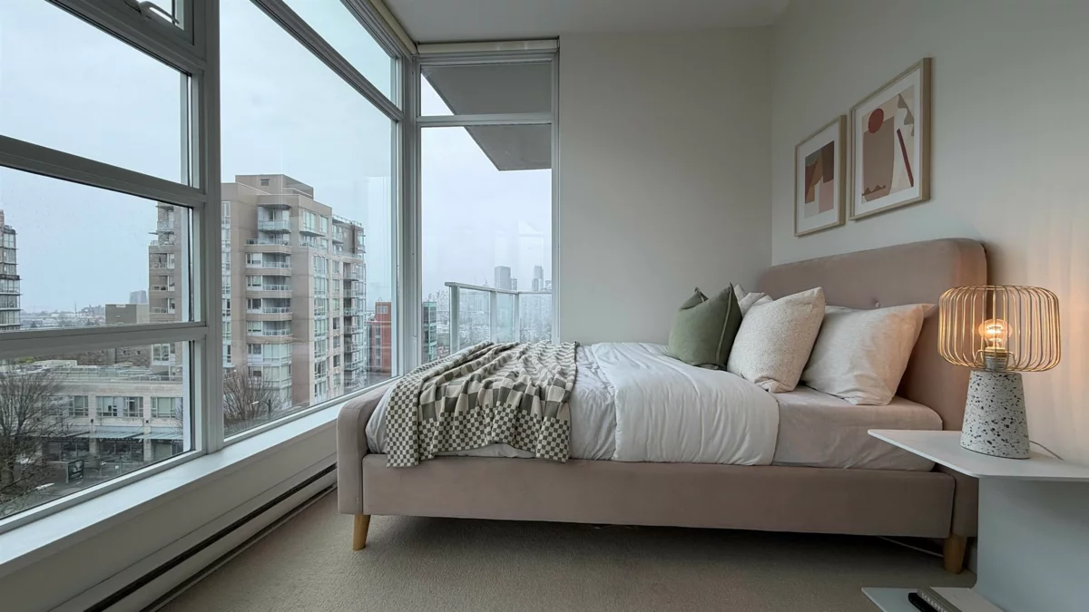 2 Bed & den, 2 Bath NW Corner panoramic view suite. Spruce, by Intracorp. This bright home offers 856 sq ft of stylish living with floor-to-ceiling windows framing stunning views of downtown. An open-concept living & dining area, modern kitchen, and versatile den/flex space is ideal for a home office. A boutique 49 suite, 11 storey building, this pet-friendly home includes 1 parking stall. Just steps to Broadway SkyTrain, Vancouver General Hospital, Granville Island, shops, cafes, and transit. An exceptional opportunity to own in one of Fairview’s most sought-after concrete buildings. New listing. 1st showings: Open Jan 29th 12:30-3:00. Jan 30: 10:00-noon, Sat Jan 31, 2:00-4:00, Sun Feb 1, 11:00-1:00