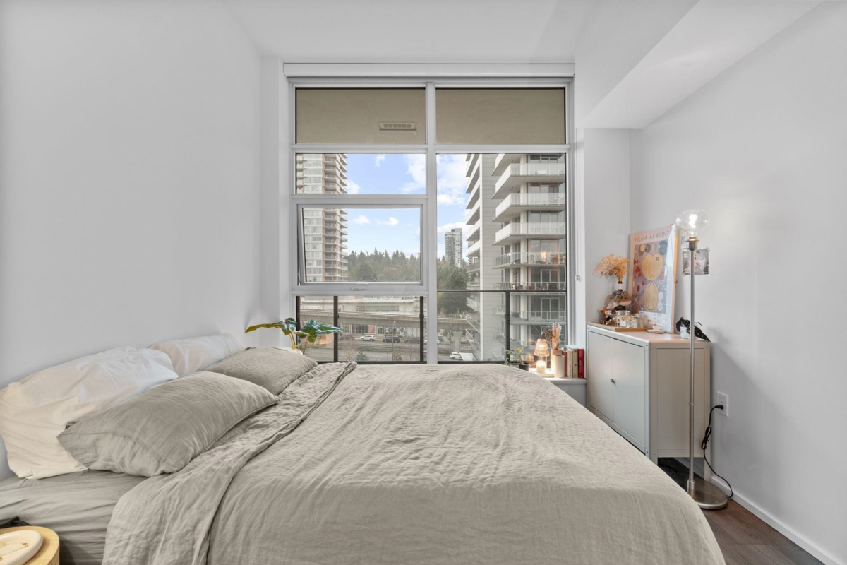 Welcome to City of Lougheed Tower One, a refined urban residence in a vibrant master-planned community. This bright 6th-floor home offers unobstructed views from the living space, with over-height ceilings and floor-to-ceiling windows creating a light-filled, elevated feel. A spacious balcony extends your living outdoors. The sleek kitchen features Bosch appliances, an oversized island, and built-in A/C for year-round comfort. Includes one parking stall, storage locker, and 24-hour concierge. Enjoy over 18,000 sq ft of resort-style amenities including fitness, lounges, and outdoor spaces. Steps to SkyTrain, shopping, dining, and daily conveniences—exceptional value in one of Metro Vancouver’s most connected communities. OPEN HOUSE: Saturday January 24th 12–2pm, Sunday January 25th 2–4pm