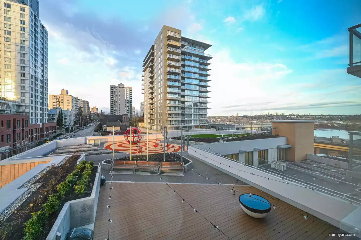 The Rare bigger and bright 1 Bed +1Flex+1 bigger Balcony, corner unit with 592 Sqt. in the heart of Downtown New West. This open concept and functional home offers a L-Shape Kitchen overlooking your living and dining areas, integrated Bosch appliances, gourmet style gas cook top, polished quartz counter-tops, and massive walk-in closet for the Primary bedroom! Enjoy City, mountain and River views of from your Living room and private balcony. Amenities include an outdoor garden space, fitness center, workspace & meeting room, lounge, community garden, pet wash station, guest suite, & more! Minutes away from Douglas College, New West and Columbia 2 Skytrain Stations. Explore trendy cafes, shops, top schools, and the picturesque Westminster Quay – all within walking distance!