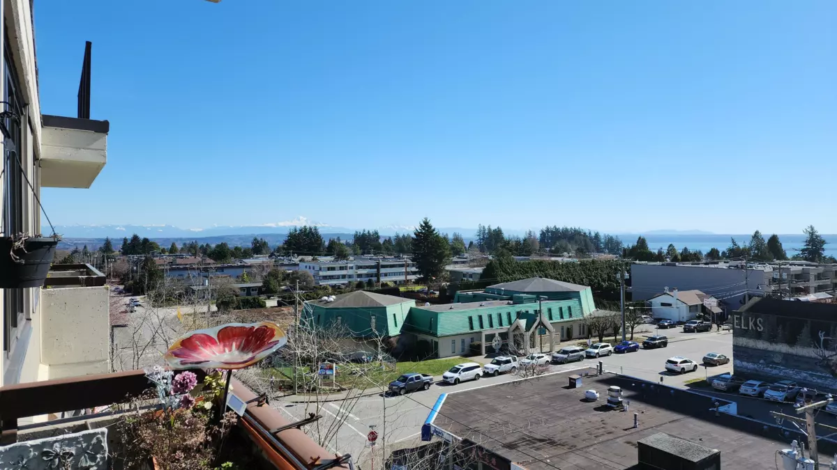 Top of the building. Corner Condo in a concrete building. Open Plan. 2 Bed, 1 Bath, remodeled approximately 7 years ago. Secure underground gated parking. Walk to shops, dining, banking, White Rock beaches. South-facing balcony, panoramic Semiahmoo Bay, 180-degree views. Open layout, chef's kitchen, high-end appliances. Delux Murphy bed, custom shelving. Master with built-in walk-in closet. Art-deco flooring, custom fireplace, and separate storage are available. Accepted offer. Court Date Monday, July 8, 2024. Tks