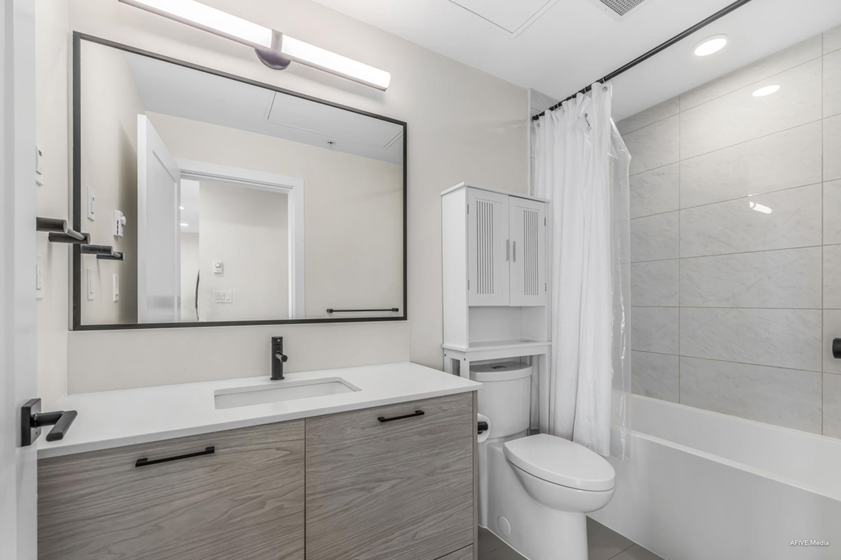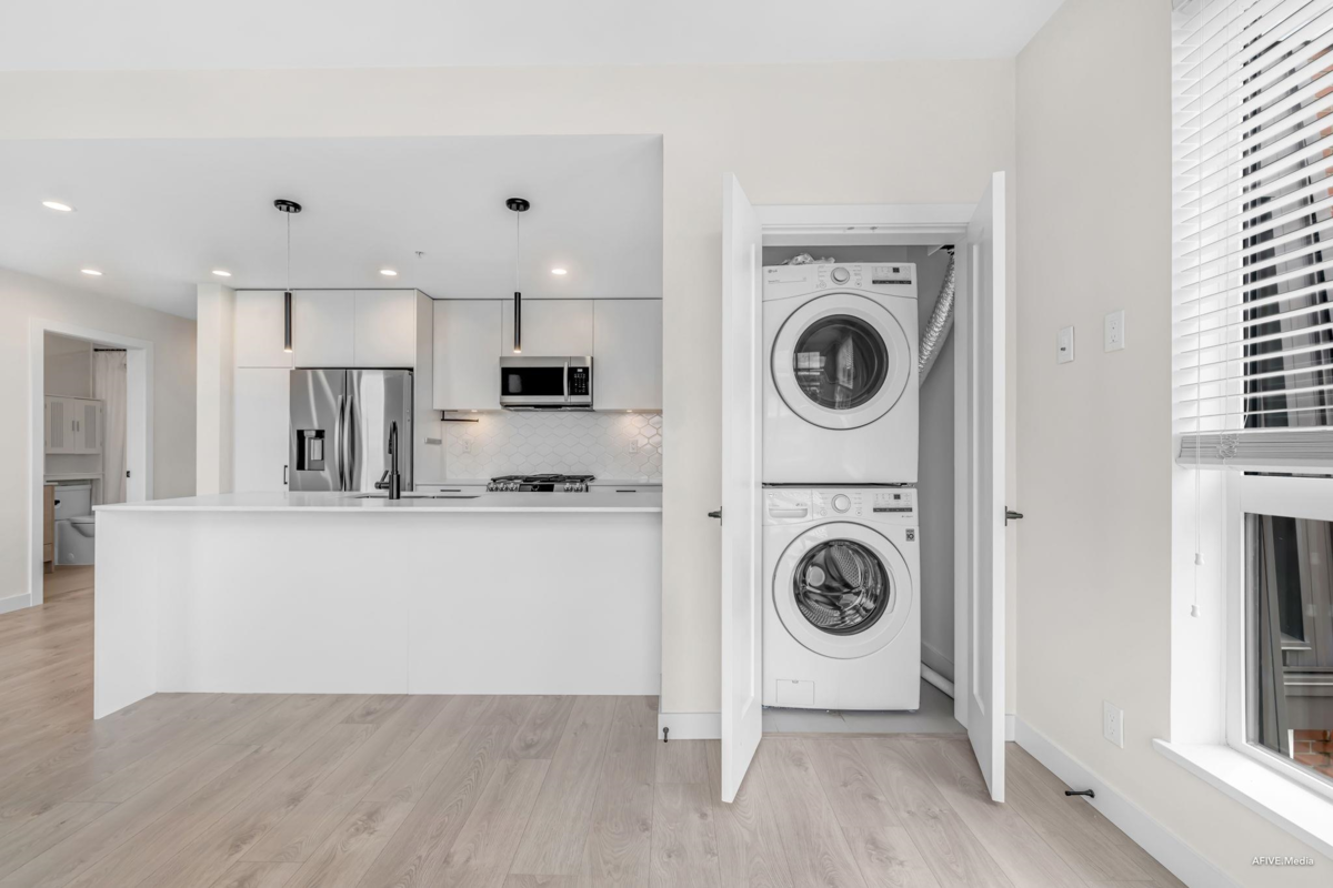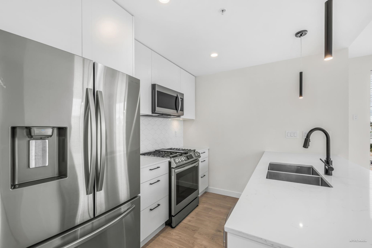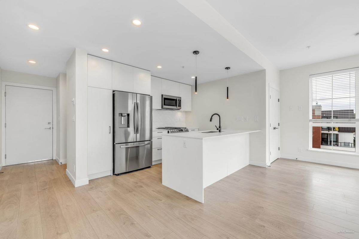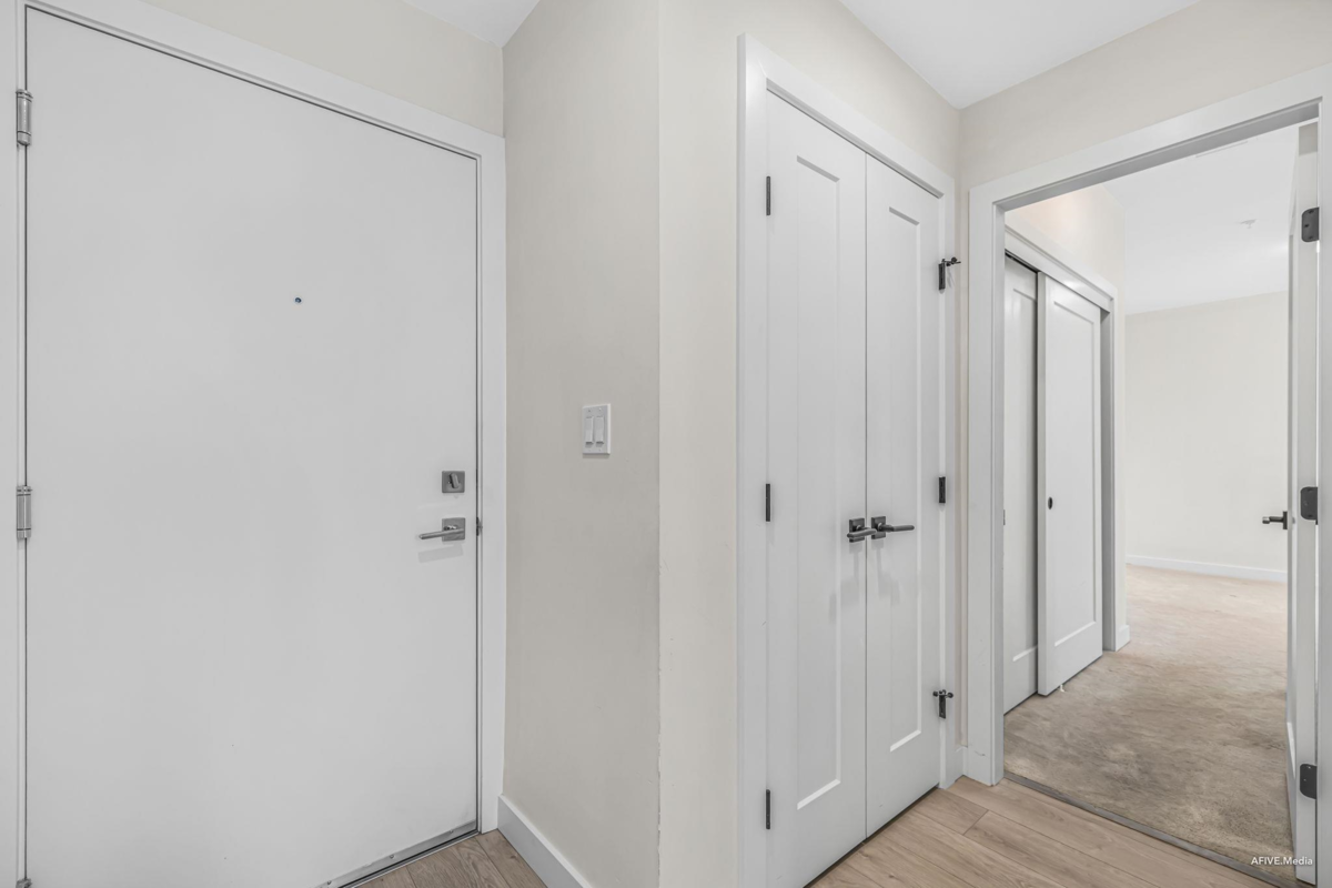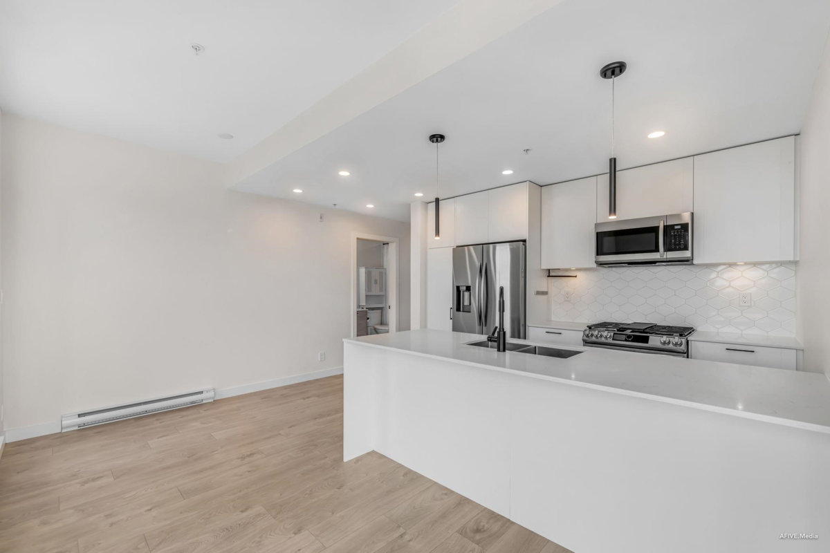 Welcome to Latimer Village, where modern living meets everyday convenience! This very rare top floor corner unit, 1 bedroom and 1 bathroom condo, built in 2023, features a functional open-concept layout with a bright living space, contemporary kitchen, and spacious bedroom with a walk-in closet. The versatile den is perfect for a home office or extra storage. Just steps from Blacksmith Bakery, restaurants, shops, and essentials, with schools, a bus loop, and Hwy 1 minutes away, this home offers unbeatable convenience. Ideal for anyone getting into the market to investors to empty nesters, this is your chance to own in one of Langley's most sought-after communities.