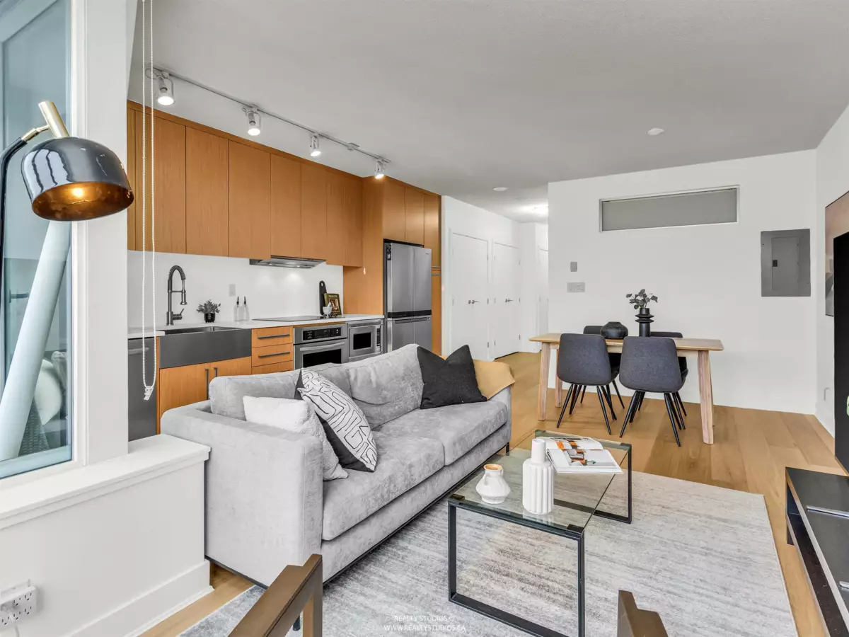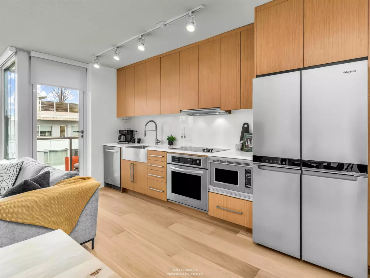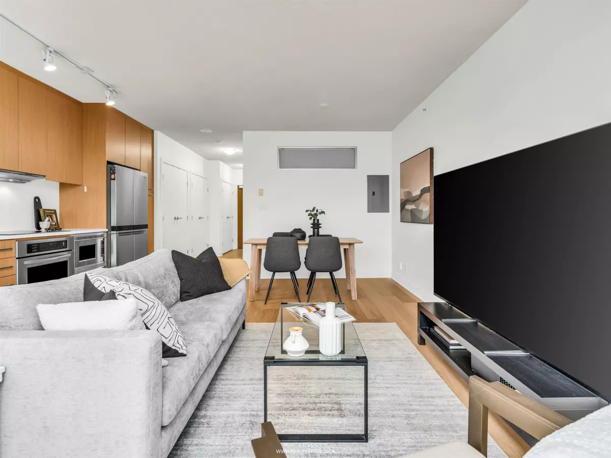 Looking for the perfect 1 bed condo with Mountain Views, attached balcony, Massive Roof top deck with BBQ & Gas Fire Place, EV parking & storage in the heart of Mt. Pleasant? You have found it! Located between 6th and 7th Ave. just off Main St. DISTRICT has it all. Inside this North facing unit you are welcomed by Beautiful, BRAND NEW, WIDE PLANK HW Oak flooring. The Elegant kitchen has ample storage, S/S Kitchen Aid appliances + brand new Double Door Fridge & Freezer. The bright Living & Dining room await diner parties or hit the Roof top deck with a big group for a BBQ. Primary bedroom fits a king + double closet for fashionistas. Ensuite laundry, bike rm, LG storage locker, upgraded electrified parking spot on P1, gym, lounge/party rm. Open House Sat. Jan 31st 2-4 & Sun. Feb. 1st 2-3pm