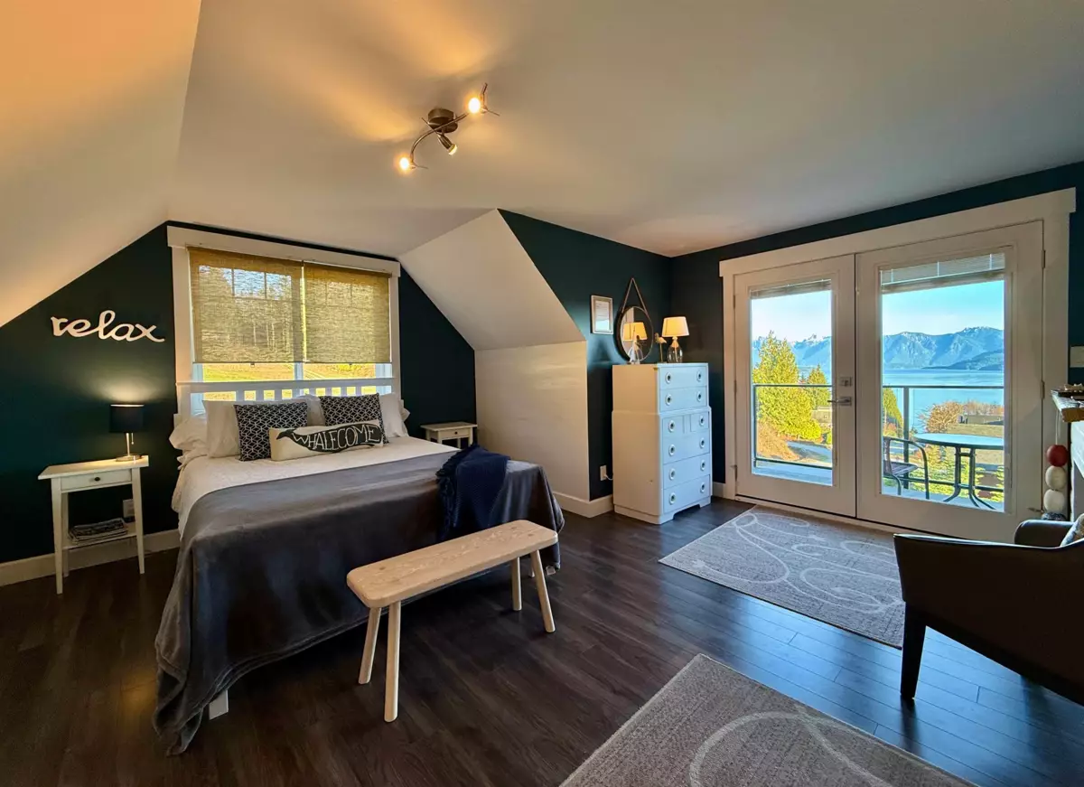 605 Woodland Avenue is a stunning like-new home offering ocean and mountain views with excellent indoor and outdoor living space. The bright open-concept main level features large windows, a well-appointed chefs kitchen with premium appliances, oversized island, and walk-through pantry. The walk-out lower level provides flexible living space, while the carriage suite above the double garage is ideal for guests, extended family, or rental income. Additional features include natural gas fireplace, vaulted ceilings, and ample storage. Set on a private, usable fenced 0.49-acre lot with gardens, raised garden beds, established landscaping and a fire pit area. perfect for relaxing or entertaining. Comfort, quality, and West Coast living at its best, proudly presented by Team True Blue.
