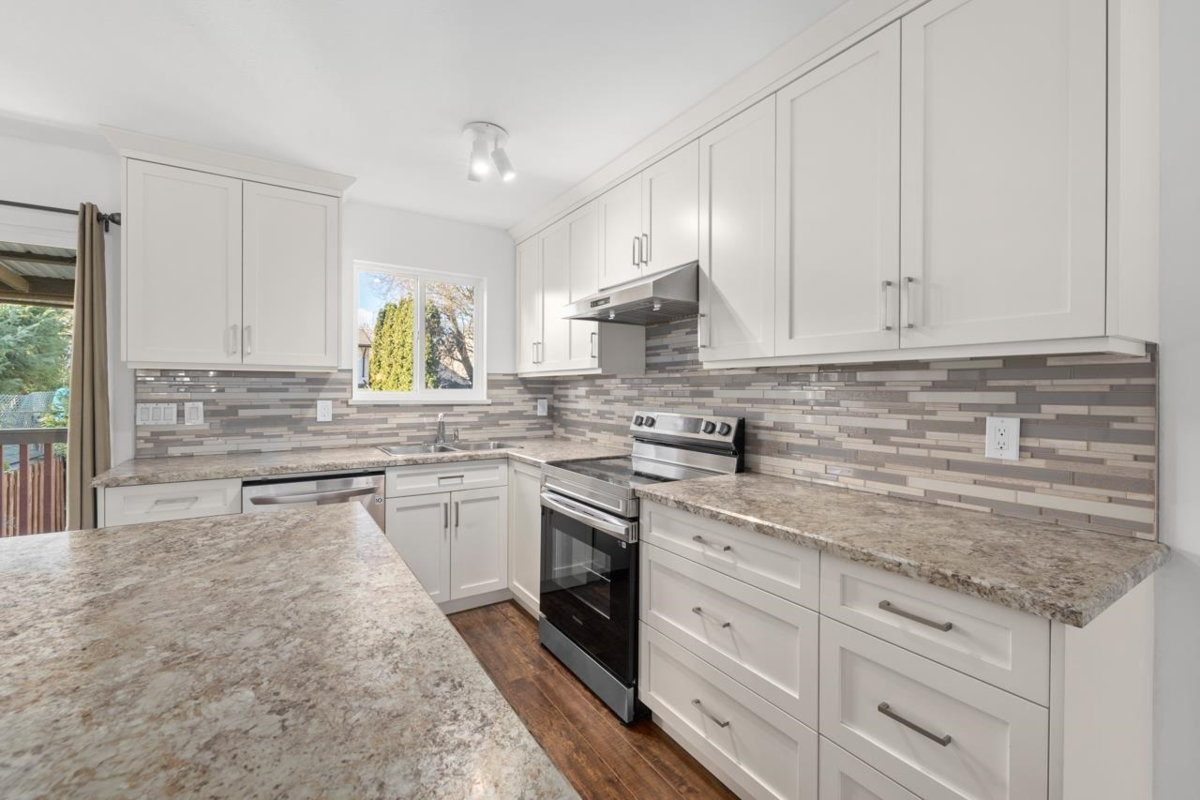 On a quiet street sits a 4 bedroom, 2 bathroom home waiting for your personal touches. Over 1100 square feet on the main with 3 bedrooms, a wood burning fireplace, sundeck off the kitchen and a bay window in the living room. Downstairs is a 1 bedroom legal suite with it’s own patio and backyard access to help with mortgage payments.. There is a 1 car garage and 2 more parking spots in the driveway. The home sits in a quiet cul-de-sac, perfect for families with young children. There is a neighborhood park with a playground behind the houses on this street. Schools, shopping and transit are very close by. A five minute walk to the new skytrain and Willowbrook Mall. Sneak peek Wednesday January 21, 5-7pm. Open houses Sat/Sun 2-4pm.