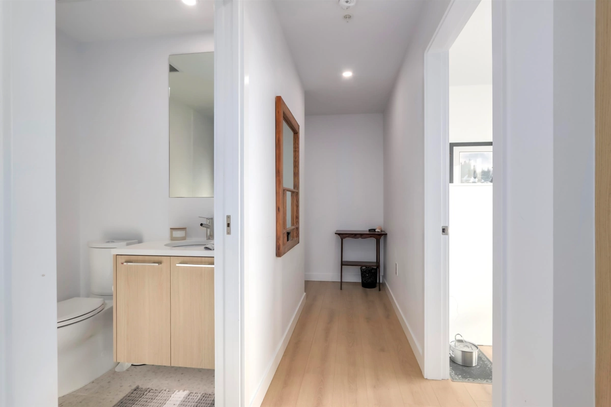 Tailor by Marcon located in the heart of Brentwood. Only minutes walking distances to Brentwood Skytrain station, Brentwood mall, Whole foods, Starbucks, major banks, Winners, and only a few minutes drive from Costco, BCIT, SFU, CEFA, Steve Nash, Deer lake park and much more. This stunning corner 2 bedroom home features an airy 9' ceiling, high efficiency heating and AC system, expansive window in the kitchen, Bosch 30' appliances package, double pantry, floating vanity motion sensor lighting in ensuite, 1 parking & 1 locker included. Premium first-class amenities including fully equipped fitness Centre, yoga/stretch room, co-working area, dog run and more.