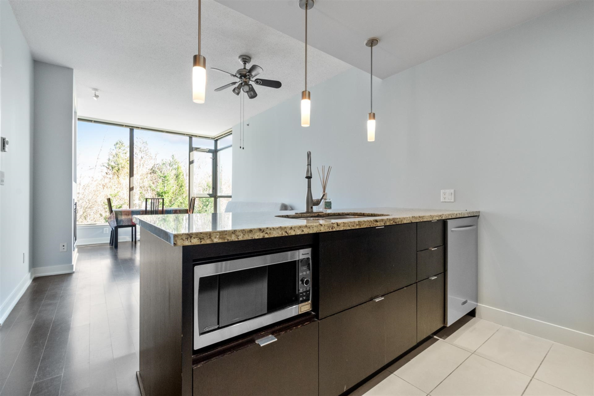 Location, location, location. Park 360 is an award winning complex by well known developer Cressey. Steps away from Edmonds Skytrain Station. This East facing unit has 9' ceiling height and it is on the quietest side of the building . Unit has lovely view of the green trees. Granite counter top, Stainless steel appliances including Gas cook, fridge, dishwasher. Good size bedroom with floor to ceiling large window. Large square balcony looking into a greenspace and it is perfect to relax after a busy day of work. Amenities include large fitness centre, jacuzzi tub and party lounge. Brand new paint was done in the last 2 weeks. unit is move in ready. The unit also comes with a parking and locker. Well maintained building. Call today to book your private showing.