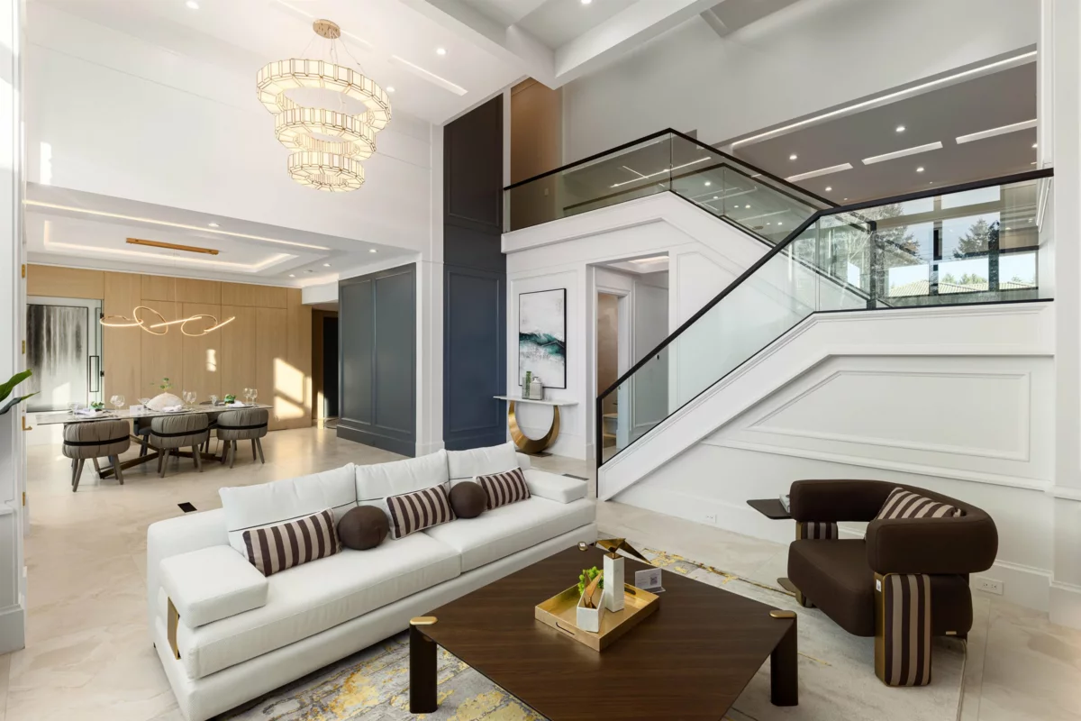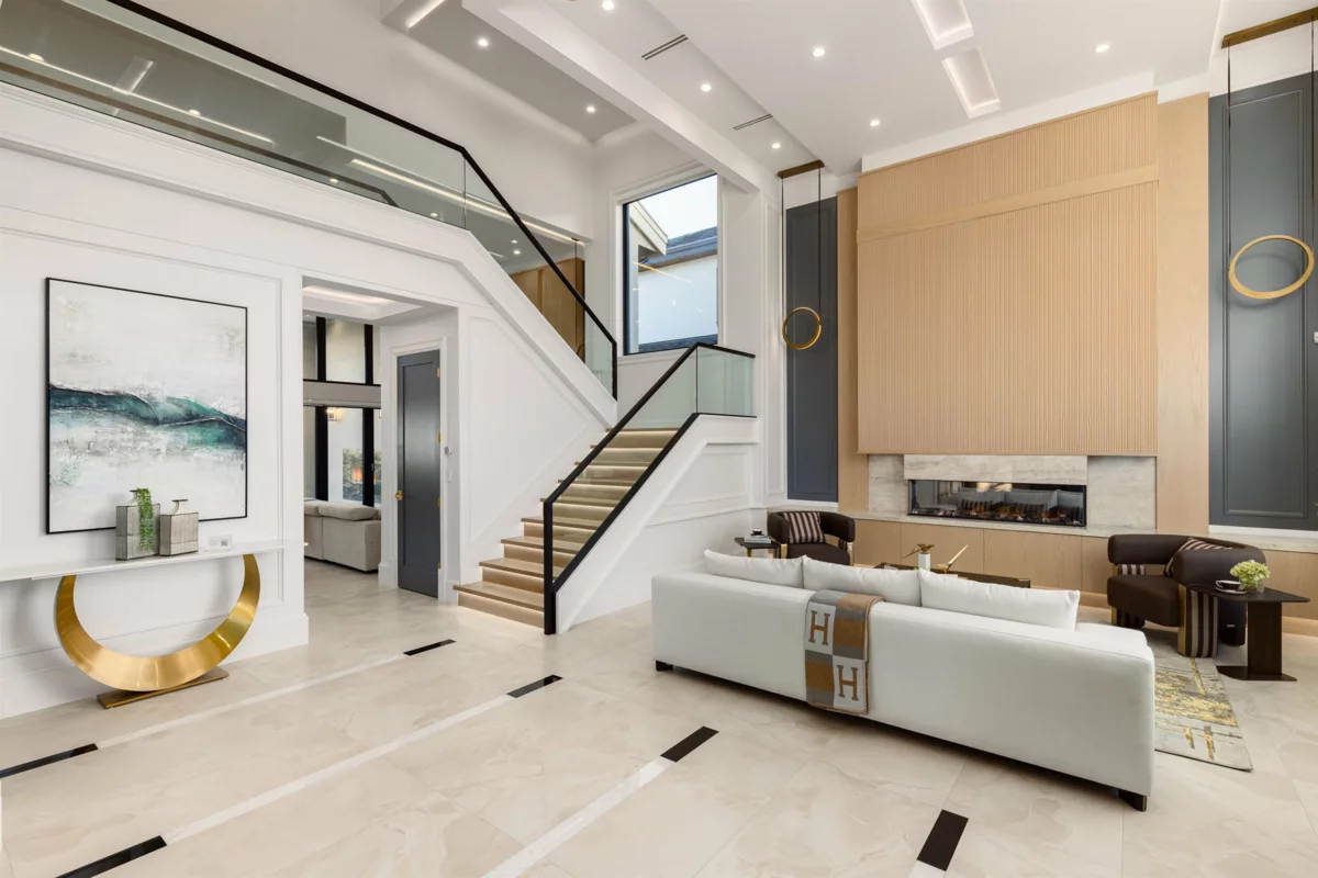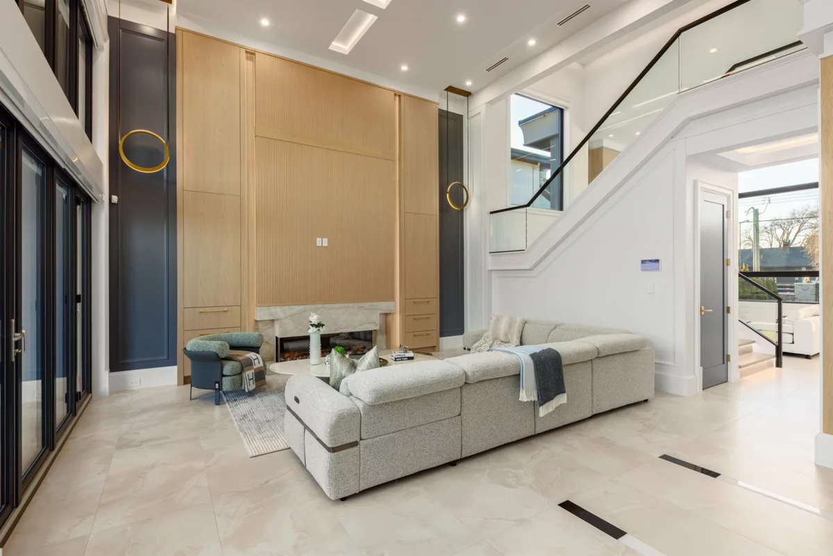Majestic brand-new home in prestigious Riverdale on a large 10,473 sq ft lot (68.2 x 155 ft). This luxury residence offers over 4,500 sq ft of refined living space, clad in natural stone for timeless elegance and durability. Features include European triple-glazed windows, soaring ceilings on both floors, Italian tile flooring, custom lighting, and European white oak kitchen cabinets with top-of-the-line appliances. Includes two luxurious primary bedrooms, extensive mouldings, natural quartz countertops, and smart home features such as Crestron security system, built-in speakers, motorized blinds, and lighting automation. Spacious family room opens to a covered patio and beautifully landscaped backyard. Legal suite. Walking distance to top schools: Blair Elementary & Burnett Secondary.