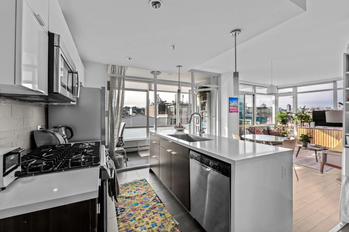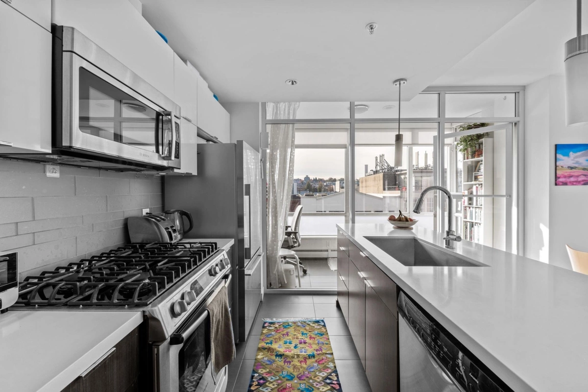 Located in the coveted Olympic Village, this 1-bedroom + den + office home offers an efficient open layout. Steps from top restaurants, shops, parks, the Seawall, SkyTrain, and more, this prime location connects you to the best of Vancouver. With floor-to-ceiling windows, this home is filled with natural light. Premium finishes include stainless steel appliances, quartz countertops, gas range, in-suite laundry, radiant heated bathroom floors, a balcony with gas hook-up, large closet, parking stall and storage. Amenities include a gym, yoga room, infrared sauna, steam room, and lounge. Pets and rentals welcome! Book your private showing today!