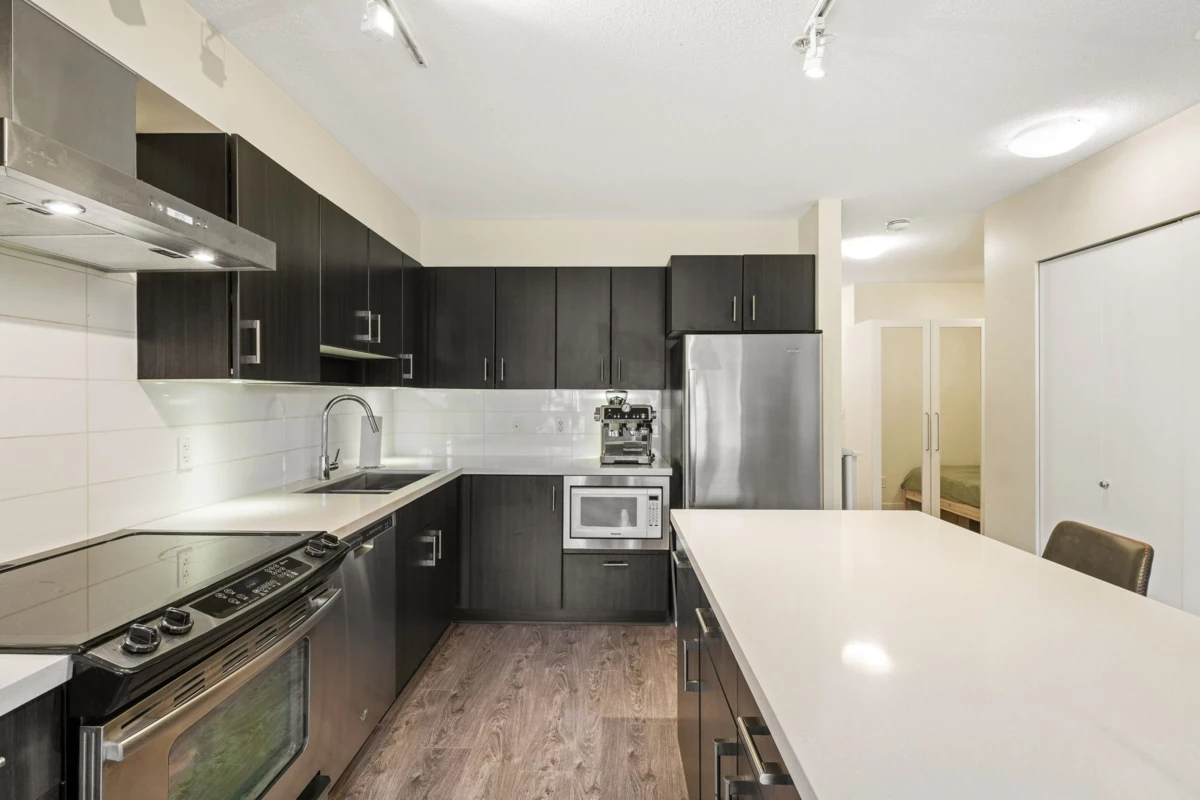Come see this incredible opportunity on the TOP FLOOR at Ledingham McAllister's Dominion. This open plan penthouse has impeccable views of New Westminster City Hall and its surrounding property from your beautiful, private balcony. Enjoy a large kitchen island with quartz countertops, classy kitchen cabinetry with Kohler fixtures, halogen track lighting, and stainless steel appliances. Your home will be easily maintained with the laminate flooring throughout. Achieve peace of mind with a well run Strata and LOW STRATA FEES! The central location on Royal Avenue gets you to the best that New Westminster has to offer in no time! Reach out to schedule your own private viewing today!