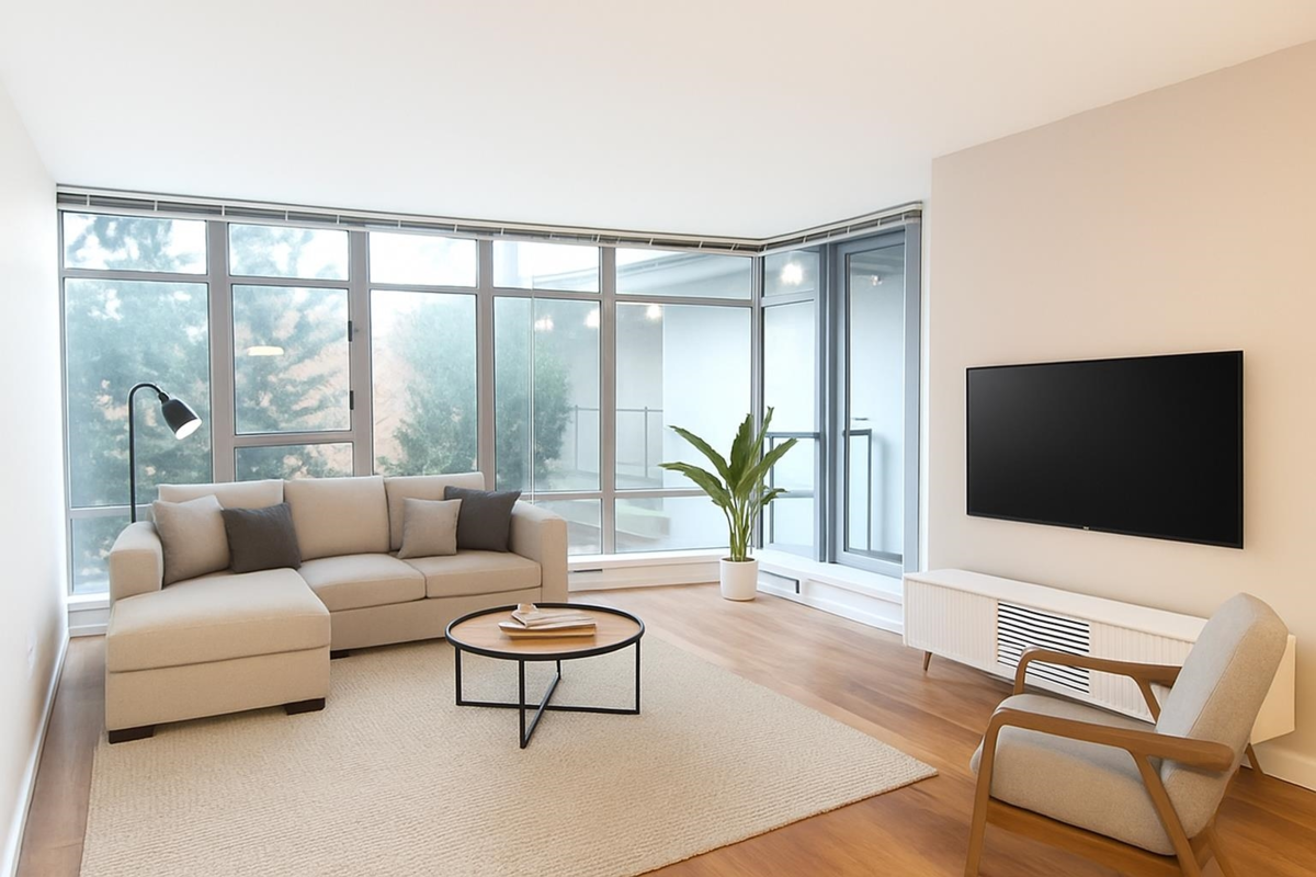 Live in comfort and convenience in this bright, garden-facing 1-bedroom home in the heart of Downtown Richmond. Floor-to-ceiling windows overlook the peaceful courtyard, filling the open layout with natural light. Enjoy modern wide-plank laminate flooring, fresh paint and a stylish kitchen with granite countertops, gas stove and stainless steel appliances. The spacious bedroom and in-suite storage add everyday ease. Just steps to SkyTrain, shops, restaurants, entertainment and daily amenities. School catchments: Brighouse Elementary and Richmond Secondary. Includes 1 secure parking spot and a locker.