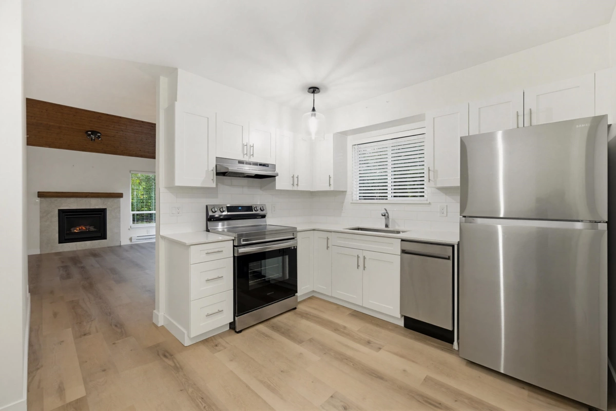 Welcome to Greenside Estates, beautifully renovated from top to bottom. Move in ready. One of the best units. Rancher style 2 bdrm/1bath & 2 parking over 986 sqft. No wasted space. Vaulted ceilings w/exposed beams, abundant natural light in living & dining room. New white modern kitchen w/ ample cabinets, moveable island, quartz countertops, new s/s appliances, massive storage room in laundry room perfect for an office, luxury vinyl floors, new blinds, doors and paint. Enjoy those cold nights in front of your gas fireplace & summer nights on your large patio and green space with full privacy. Great amenities w/ pool and multipurpose room w/ kitchen. Doesn' t get better than this. Nestled in the quiet community. Close to Willowbrook shopping, restaurants, schools and all your needs.
