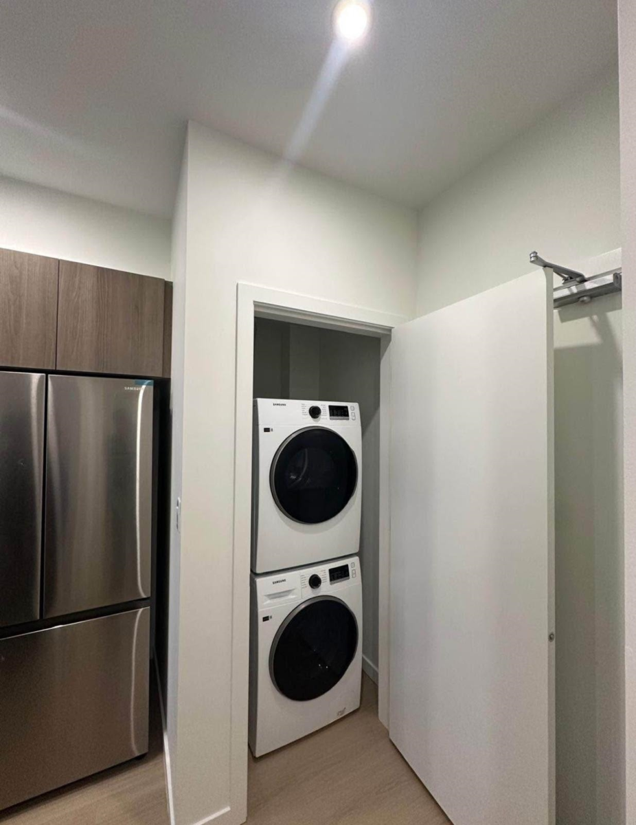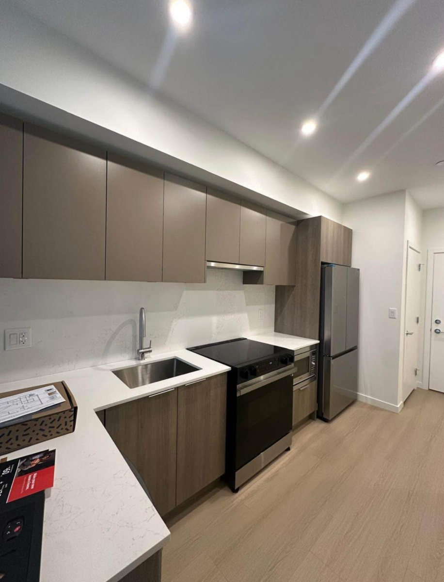 Welcome to VIKTOR, centrally located near Surrey City Centre with easy access to all amenities, SkyTrain, and the future 140th Street Station. This spacious 1 bed, 1 bath home features high ceilings, wide plank laminate flooring, and a modern kitchen with elegant two-toned cabinetry, quartz countertops, and ample storage. Enjoy brand-new living with peace of mind under the 2-5-10 New Home Warranty. Fantastic building amenities include a large courtyard, gym, party room, and a multi-function room with kitchen and rooftop terrace. Excellent location within walking distance to Forsyth Elementary, Forsyth Park, and SkyTrain. Perfect for first-time buyers or investors!