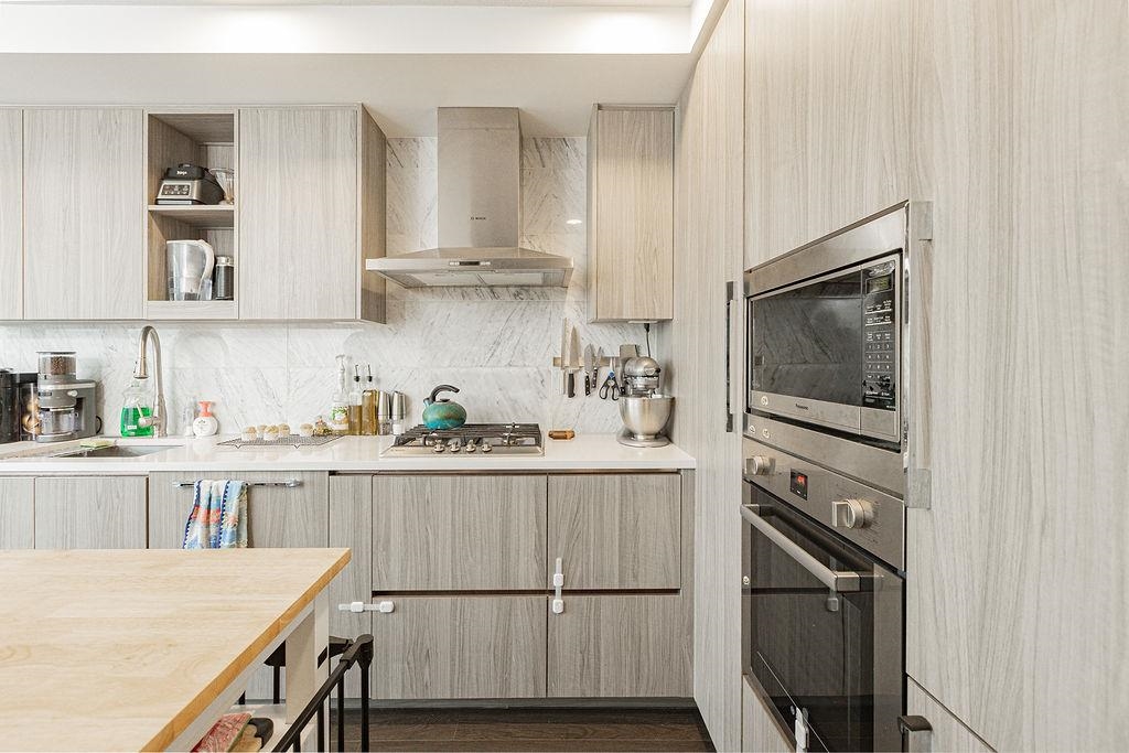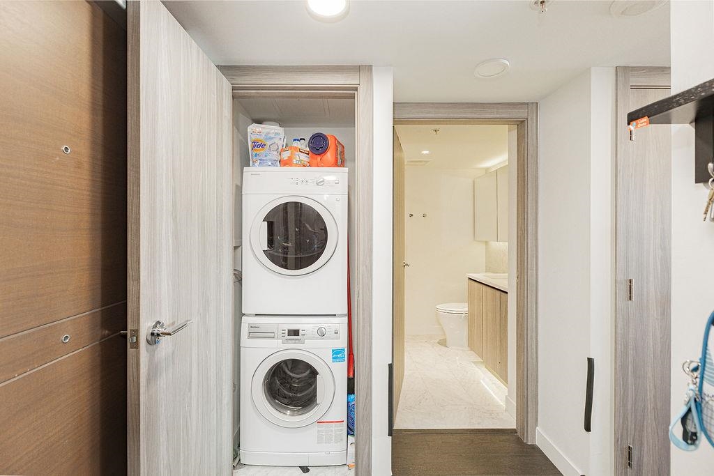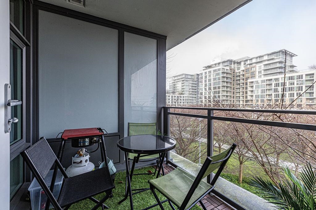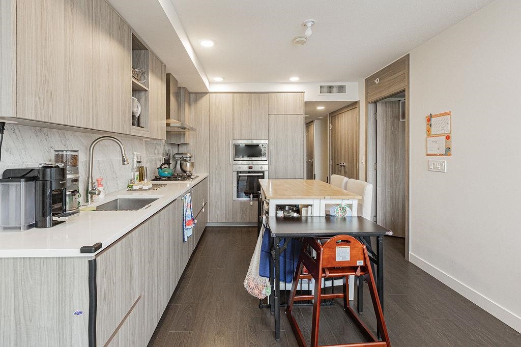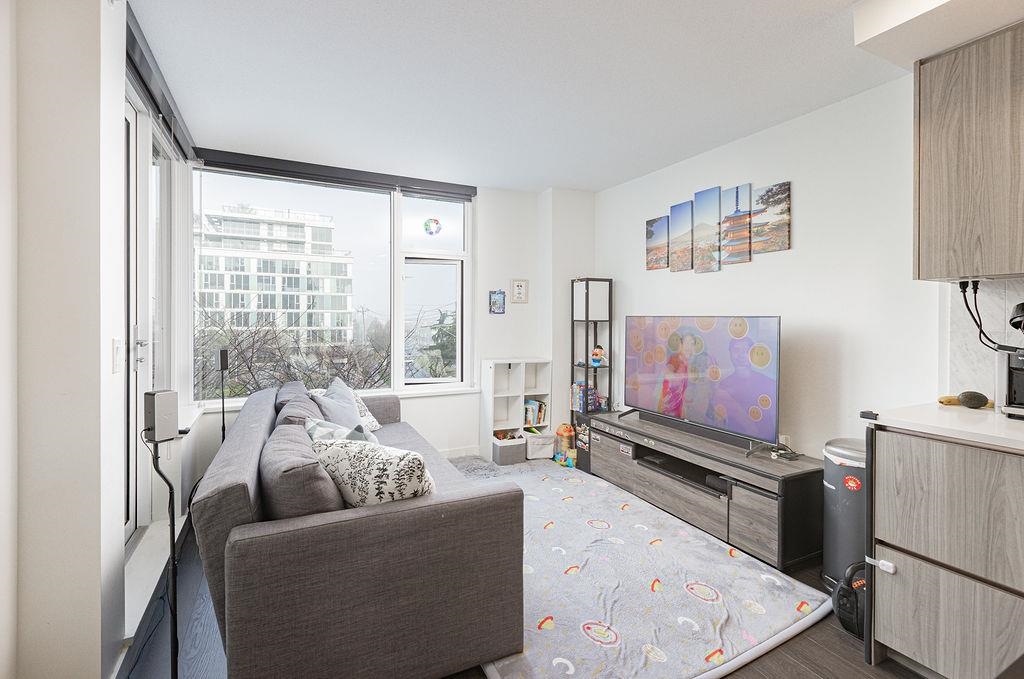 Concord Gardens Park Estates II by Concord Pacific. Bright and functional 1 bedroom + den, with the den featuring a closet and suitable for use as a second bedroom. Enjoy mountain views and a beautiful CHERRY BLOSSOM outlook in spring, bringing natural scenery right to your window. This newer luxury community offers resort-style amenities including an indoor swimming pool, hot tub, fitness centre, basketball and badminton courts, golf simulator, playground, and elegant lounge areas. Unbeatable central location-steps to shopping, restaurants, transit, and the Capstan Way SkyTrain station. An excellent opportunity for both end-users and investors. Don't miss out-book your private showing today!