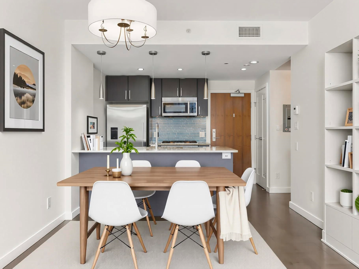 Perfect floor plan for the Olympic Village one bedroom & den home you've been looking for. This layout offers every functional space a home can possess. Full sized appliances in kitchen, ample dining and living room space, well lit den, perfect for a home office, large flex/storage room and a walk in closet. Facing the quiet backside of the building, showered in natural sunlight but cooled by the homes's A/C. The home also includes parking, a storage locker and dedicated bike stall. Prime Olympic Village location steps to the sea wall, restaurants and grocery; a short walk to 2 skytrain options. The One offers an outdoor rooftop pool, fitness centre and party room. This home ticks every box, come see for yourself.