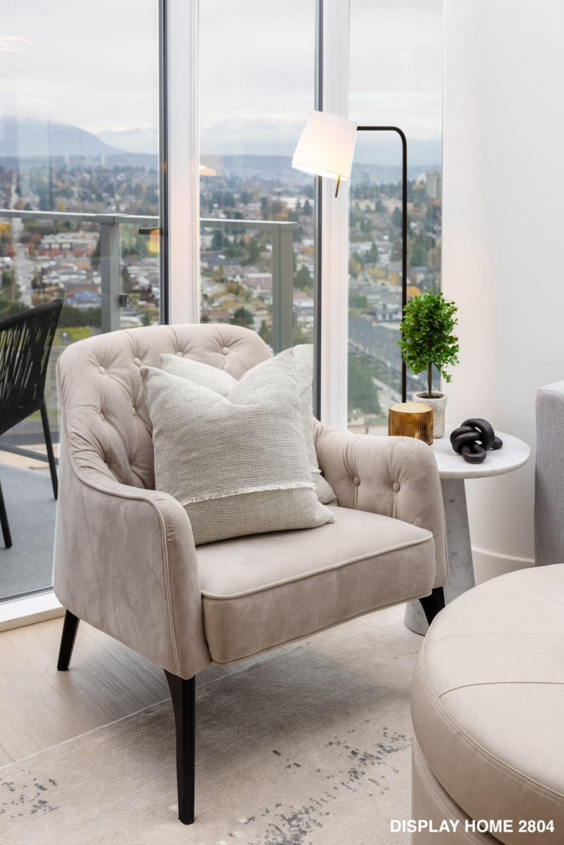 Welcome to Azure 2 by Ledingham McAllister, an established community in Southgate City, Burnaby. This beautifully designed 2-bed home features water views of the Fraser River and New West Quay. The open layout flows into a large kitchen with oversized island, full-height cabinetry, pantry space, and undermount lighting. Bedrooms are separated for privacy, with the primary offering a generous walk-in closet. Enjoy a private balcony, full-size appliances, and the comfort of Azure's efficient heating and cooling system. Move in today! The Sales Centre will be closed for the holidays from Dec 19 to Jan 3, open by appointment only. Book an appointment with our Sales Team.