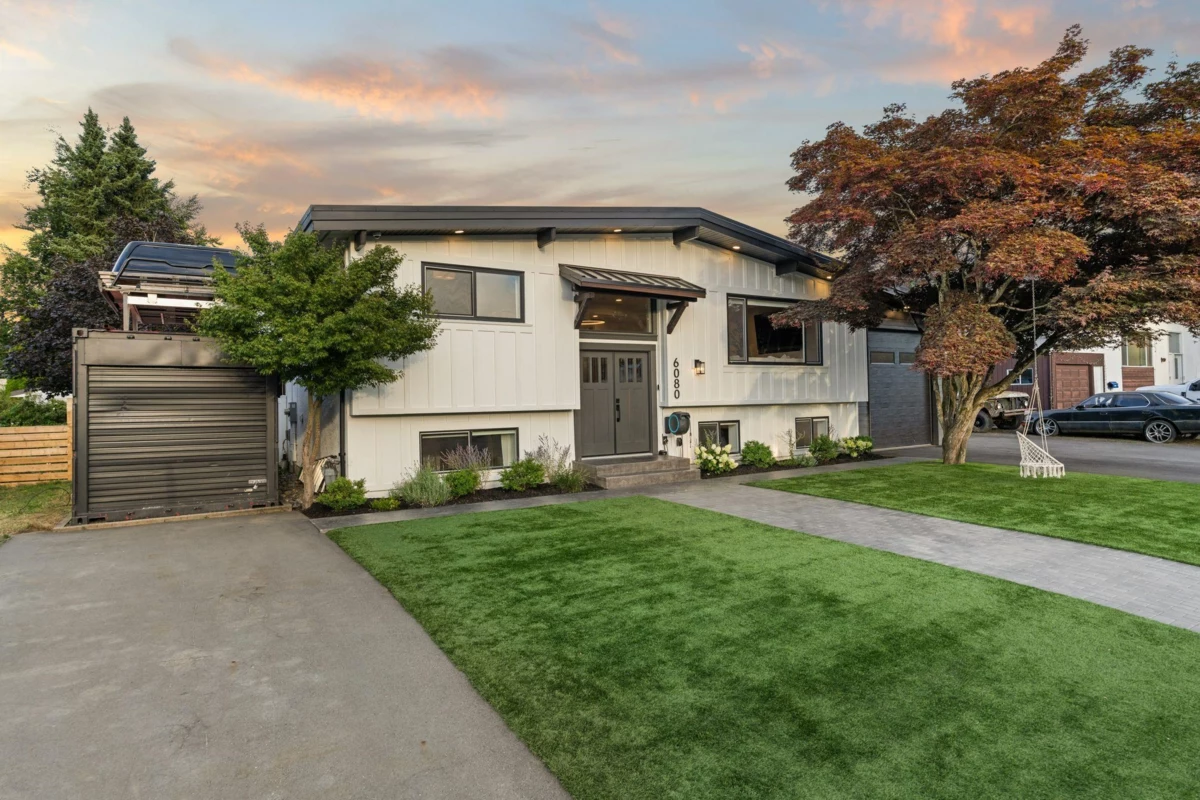Welcome to your turnkey, low-maintenance dream home in the heart of West Sardis! This beautifully updated 5-bedroom property has been renovated inside and out with no expense spared. Perfectly located near shopping, schools, parks, recreation, and endless walking trails, this is an opportunity you won’t want to miss. The home features a brand-new Hardie Board exterior and an oversized 12-foot garage door—ideal for car enthusiasts. Both the front and back yards are finished with high-end artificial turf, giving you a lush green lawn all year round without the upkeep. Enjoy your own private putting green, built-in deck heater lamps, making this the ultimate home for entertaining. RV AND Boat Parking, room for both. C-Can and Hottub are negotiable. This isn’t just a house — it's a lifestyle.